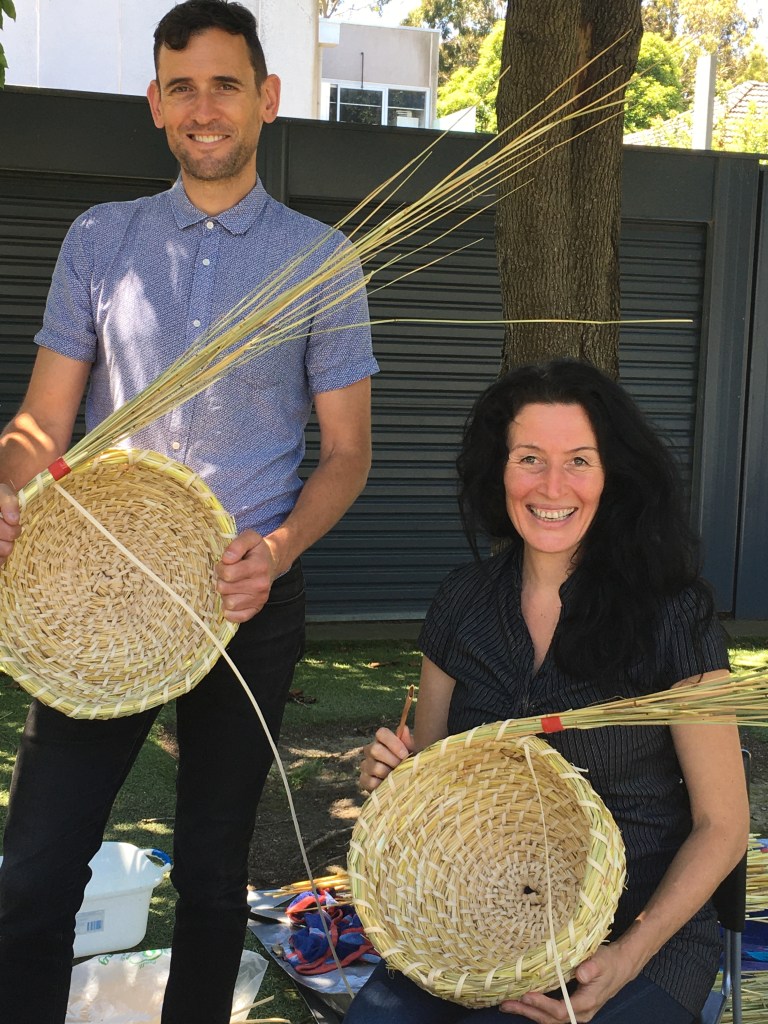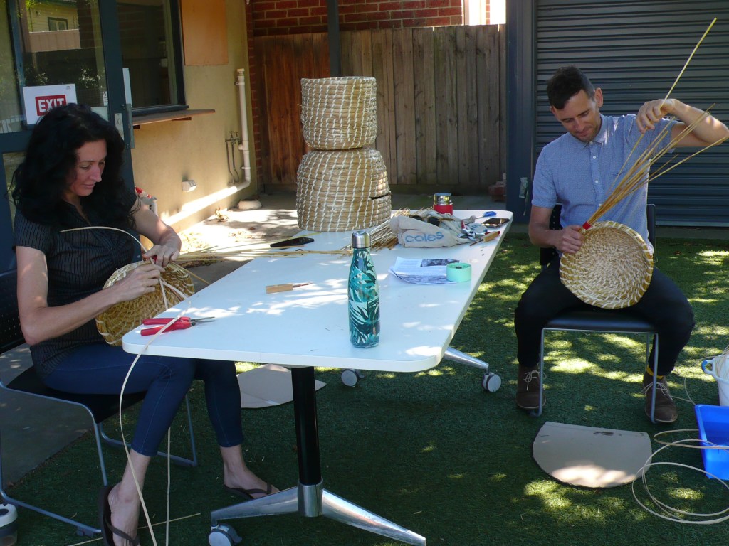 I went to Melbourne for the first time in nearly a year, to run a small bee skep workshop for Graham, Nerina and James on Thursday 7th and Friday 8th of January. We spent two enjoyable days making and chatting under the large oak tree at the Surry Hills Neighbourhood Centre. James bought his bees skeps along to show, that he purchased when he studied beekeeping in London a few years ago. It was a shock to see how much Melbourne has changed over the last year, my heart goes out to Melbournites as they try and recover from the effects of Covid 19.
