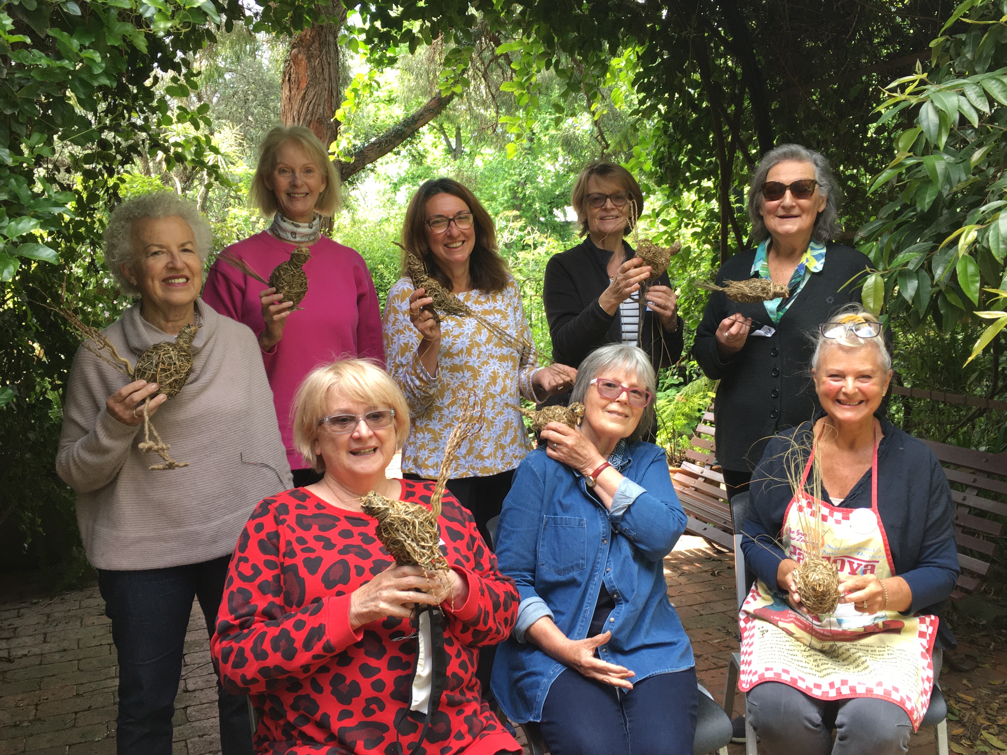 The weather was perfect for the outdoor workshop held by Friends of Royal Botanic Gardens at the Plant Craft Cottage last Saturday November 20. I led 8 participants through an open step-by-step process to make small birds using sculptural techniques and the basketry technique of random weaving or interlacing. The ladies shown dedication in their navigation through learning new techniques and making a number of creative choices to create beautiful little birds. It was wonderful to see Melbourne busy again with people out and about enjoying “life after lockdown”.