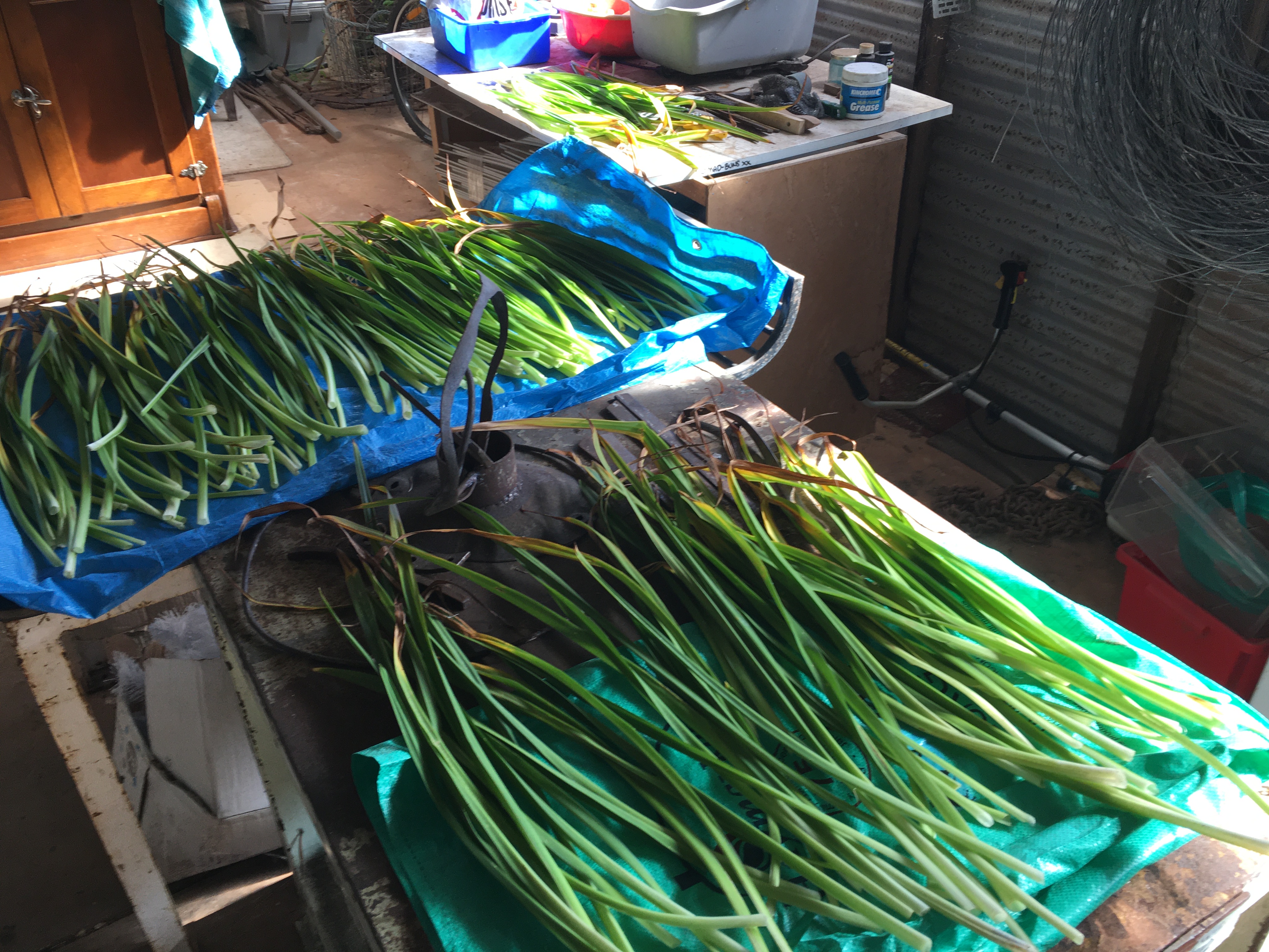 I have also collected day lily very recently as the flowers had finished and the leaves were starting to dry off. I cut the plants back completely and then spent time washing each length individually before laying on a rack to dry. If I have more time over the next week I will tie them in bunches of 25 leaves and hang them up to dry. If the weather turns cold I may have to bring the bunches inside to hang in my laundry so they do not go mouldy! I have left this task a bit late this year…