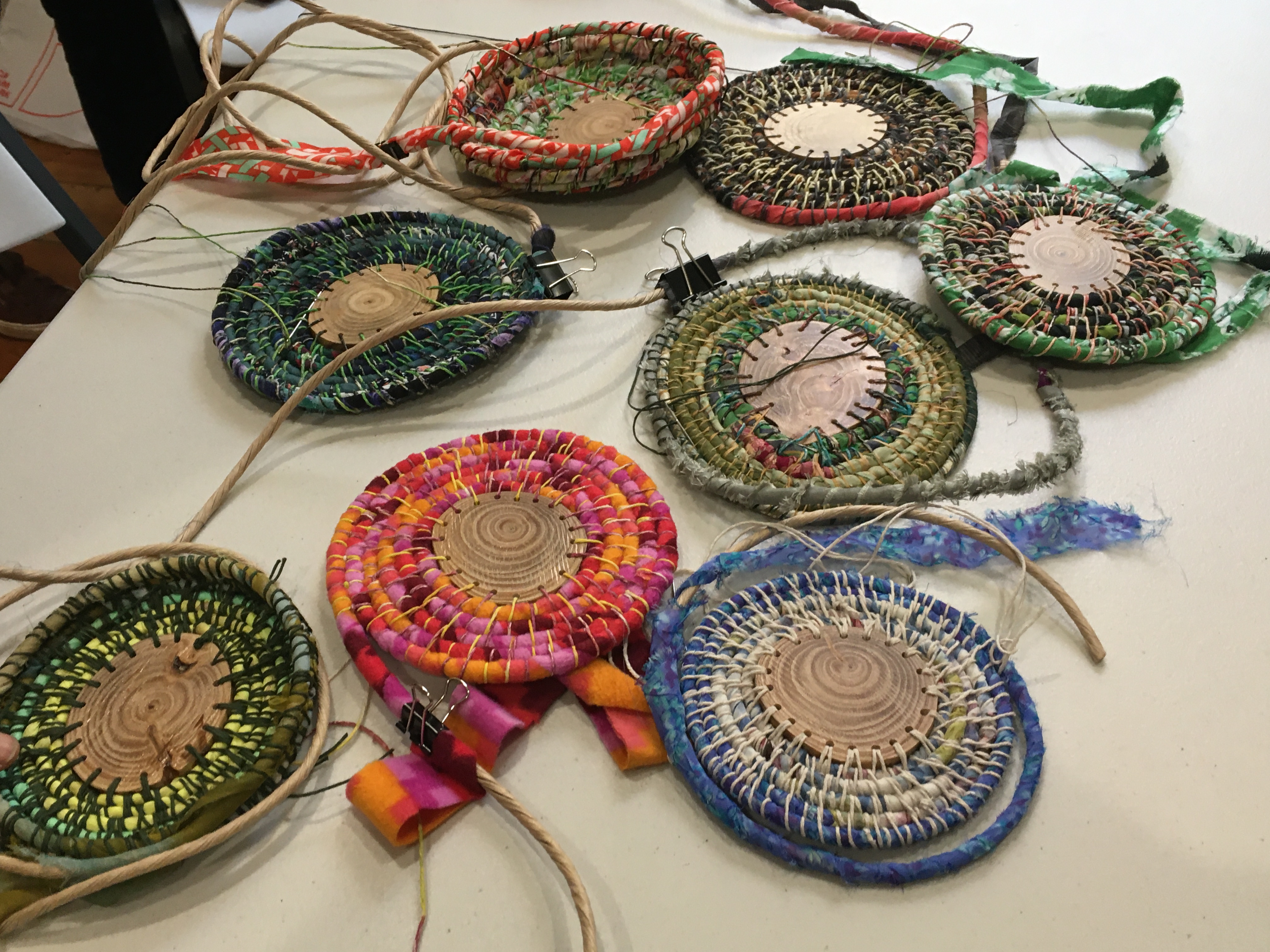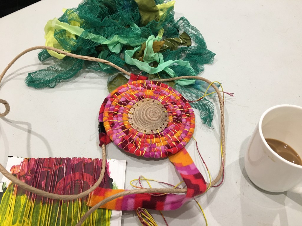 Last Saturday June 18, I spent the day with Friends at the Plant Craft Cottage in the Royal Botanical Gardens Melbourne. I showed 7 women how to make a coiled basket, which they took home to finish as this technique is time consuming and can’t be finished in one day. Lisa Stevens from the Friends of Royal Botanical Gardens was there to assist, and her attentive support made the day run smoothly and added another dimension to the cultural experience. Thanks to Lisa and other volunteers who do great work at the Plant Craft Cottage!