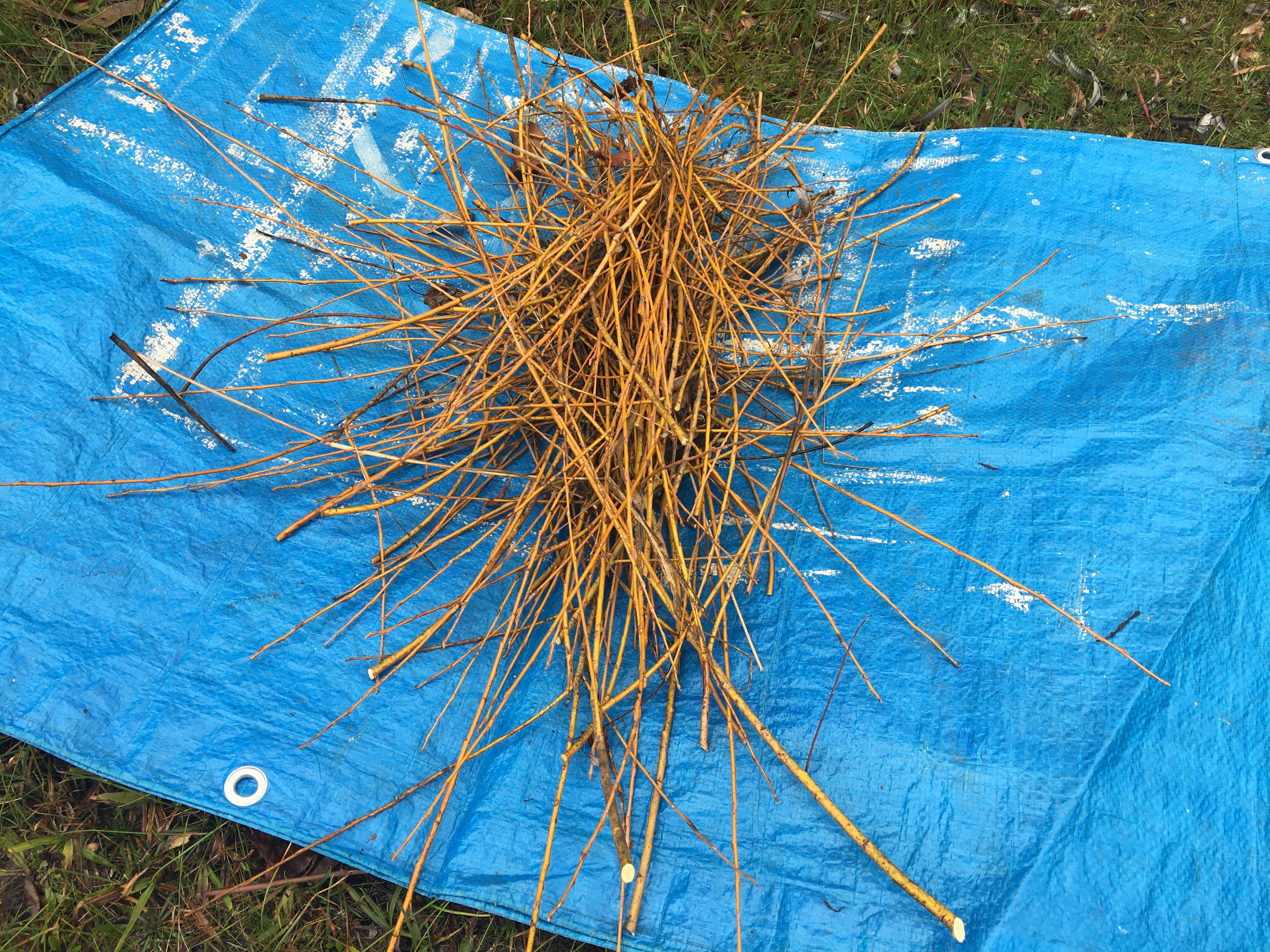 Gloves, secateurs and loppers are the only tools I need to harvest this problematic natural material. I make sure to collect all small pieces of trimmed willow and remove it from the waterway so I don’t spread willow. As you may be aware, willow is a declared weed in Australia. It spreads fast, congests waterways and out competes native species. If willow is removed there is the cost of replanting native plant species and caring for them until they thrive. Removing willow without this continued investment may lead to erosion and waterways that are in poorer health. Willow removal is a controversial subject in our region (the Central Highlands of Victoria), one that I like to discuss so that there is more understanding of the issue.
