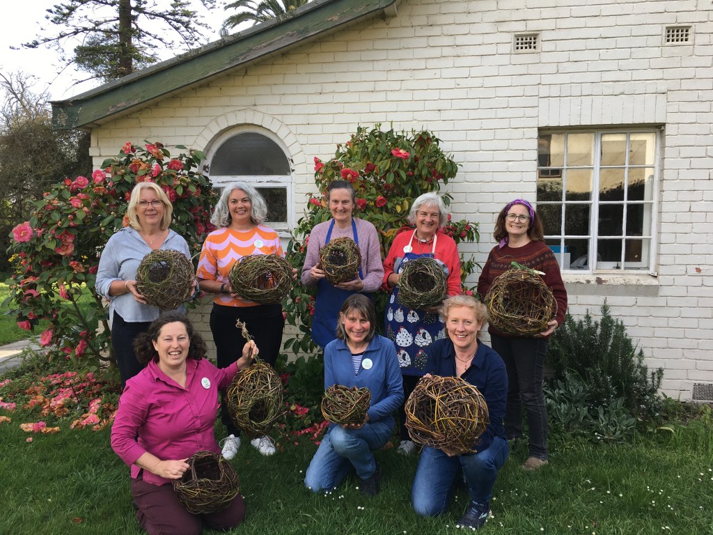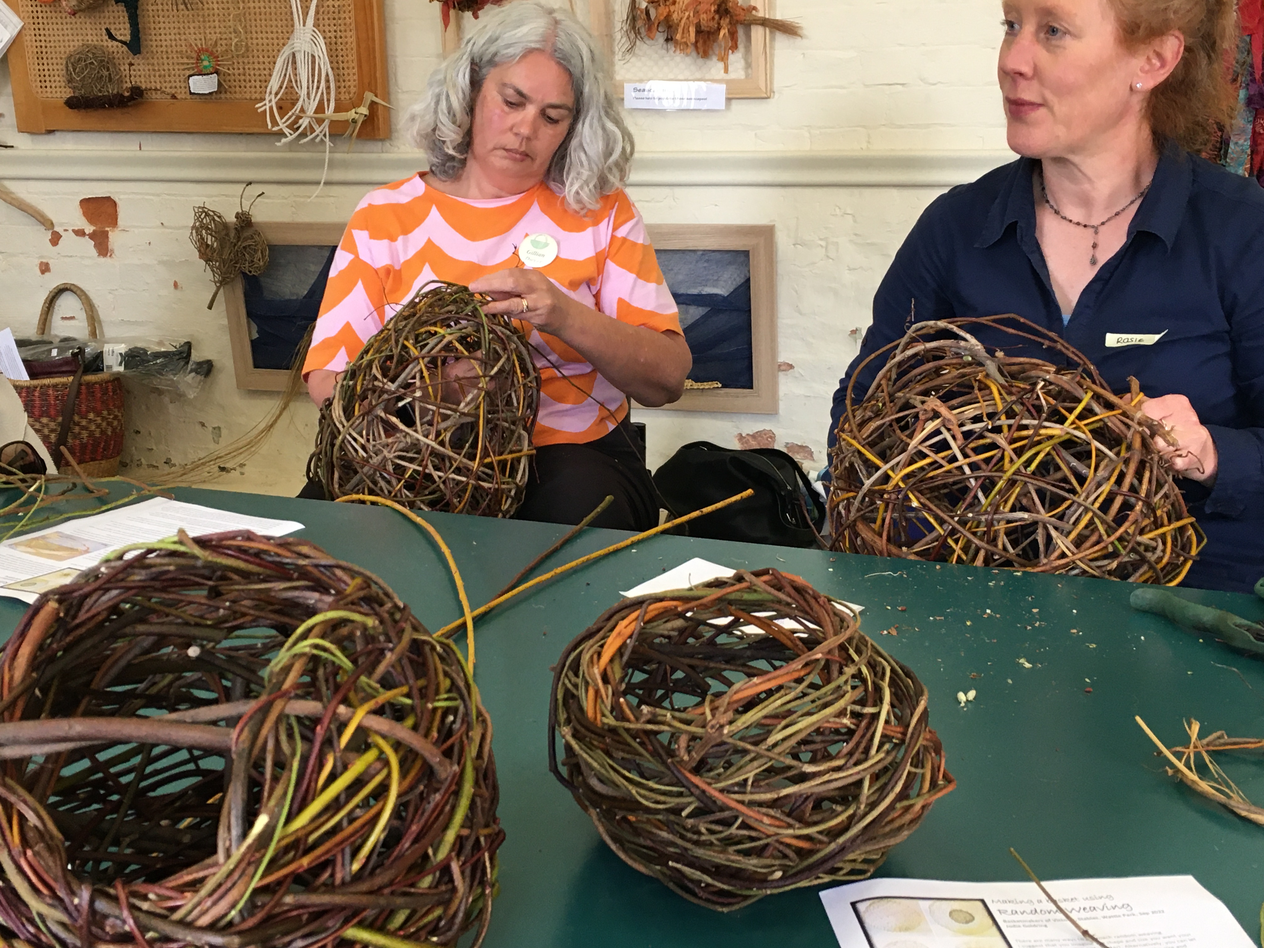 Last Sunday September 25, I spent the day facilitating a random weave workshop for the Basketmakers of Victoria at their historic stable in Wattle Park. Most of the day we sat outside in the sunshine, enjoying the warmth and conversation, while keeping hands busy!