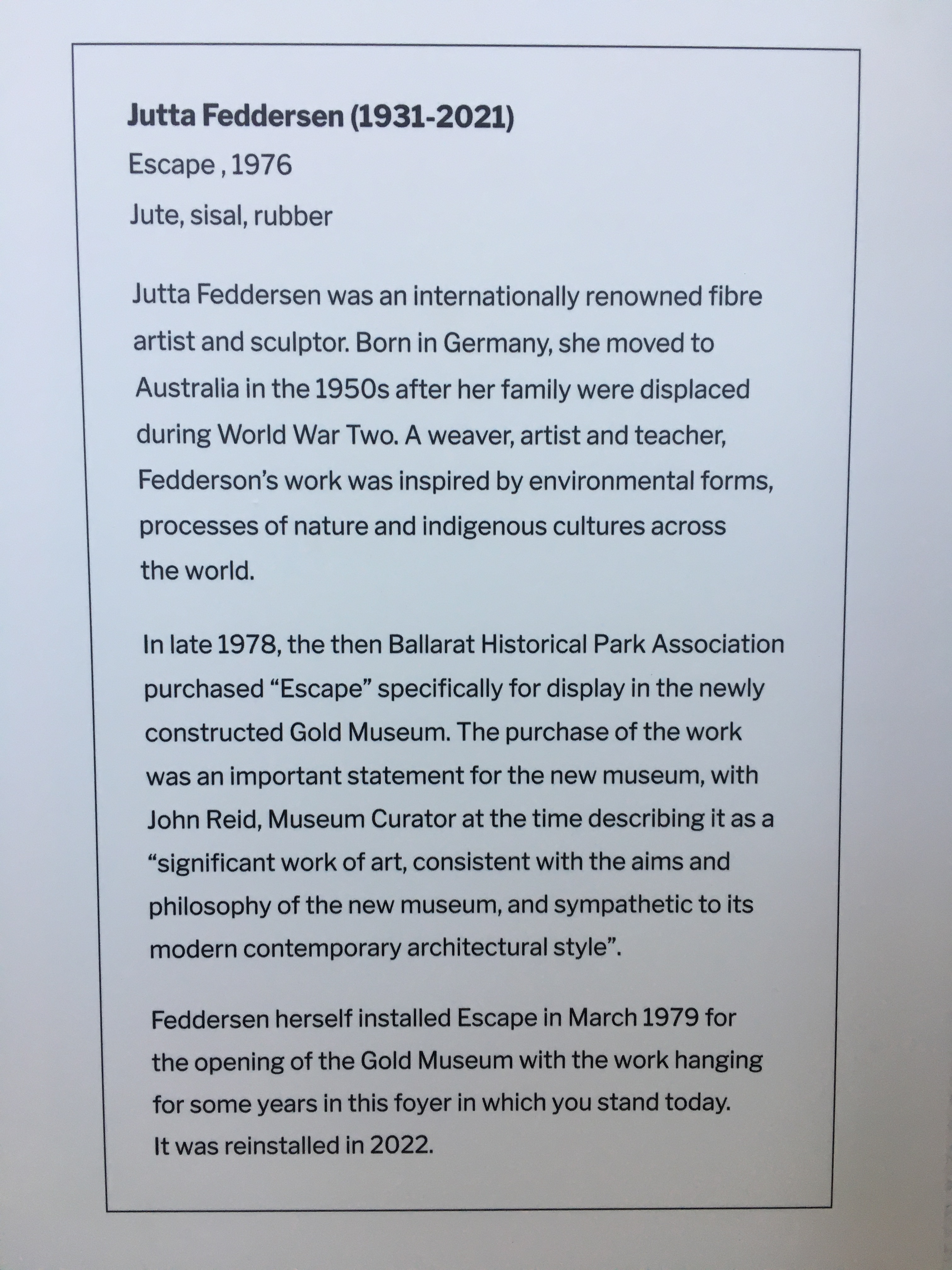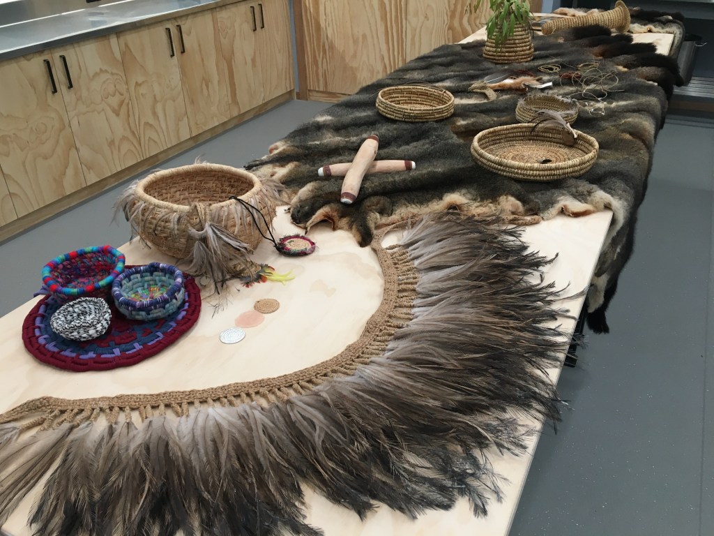 I also took some photos, including the incredible work by Jutta Feddersern that has been taken out of storage and restored in the foyer. Work by Wadawurrung weaver Tammy Gilson was displayed in the fibre arts studio where I will be teaching tomorrow.