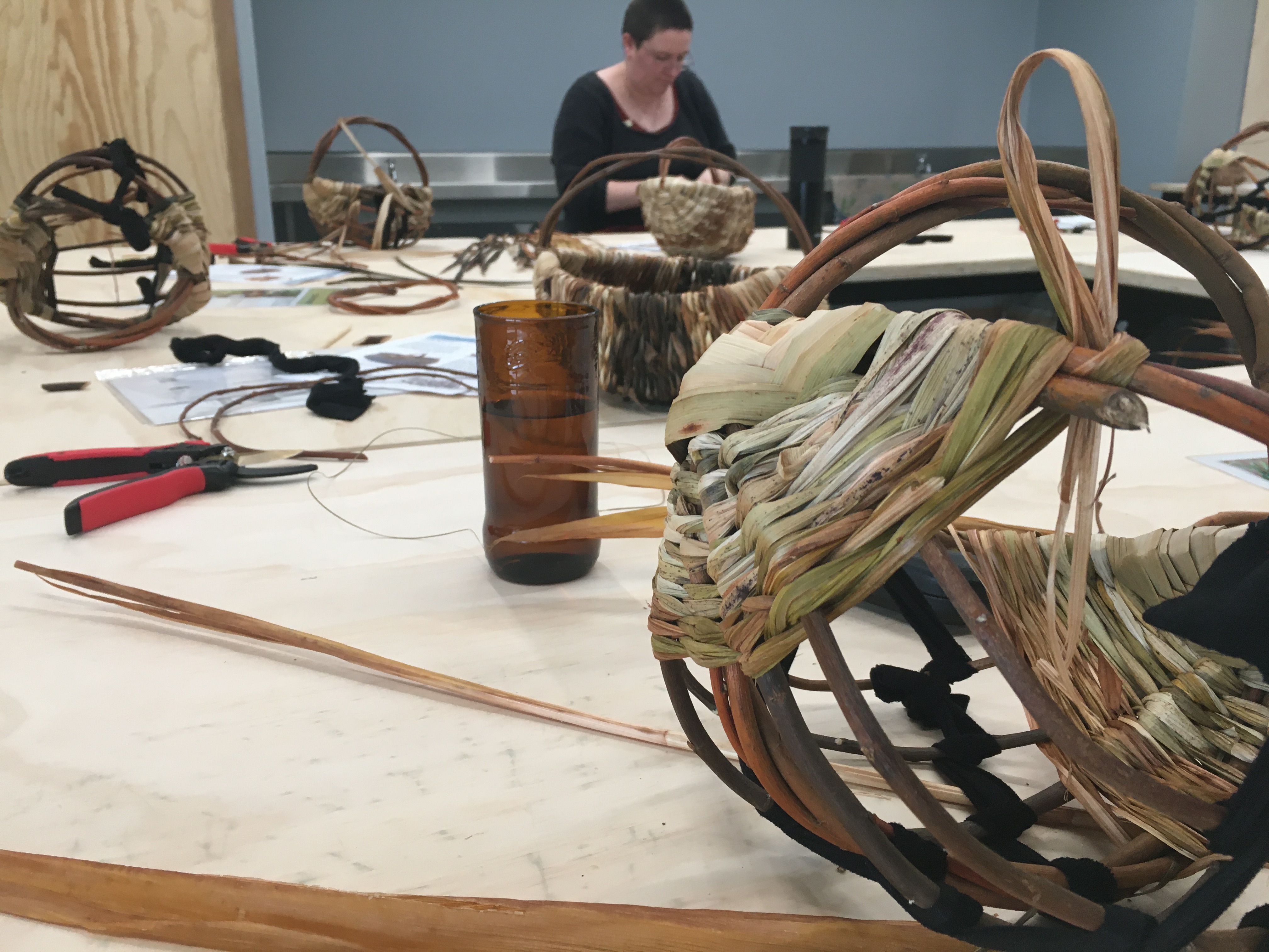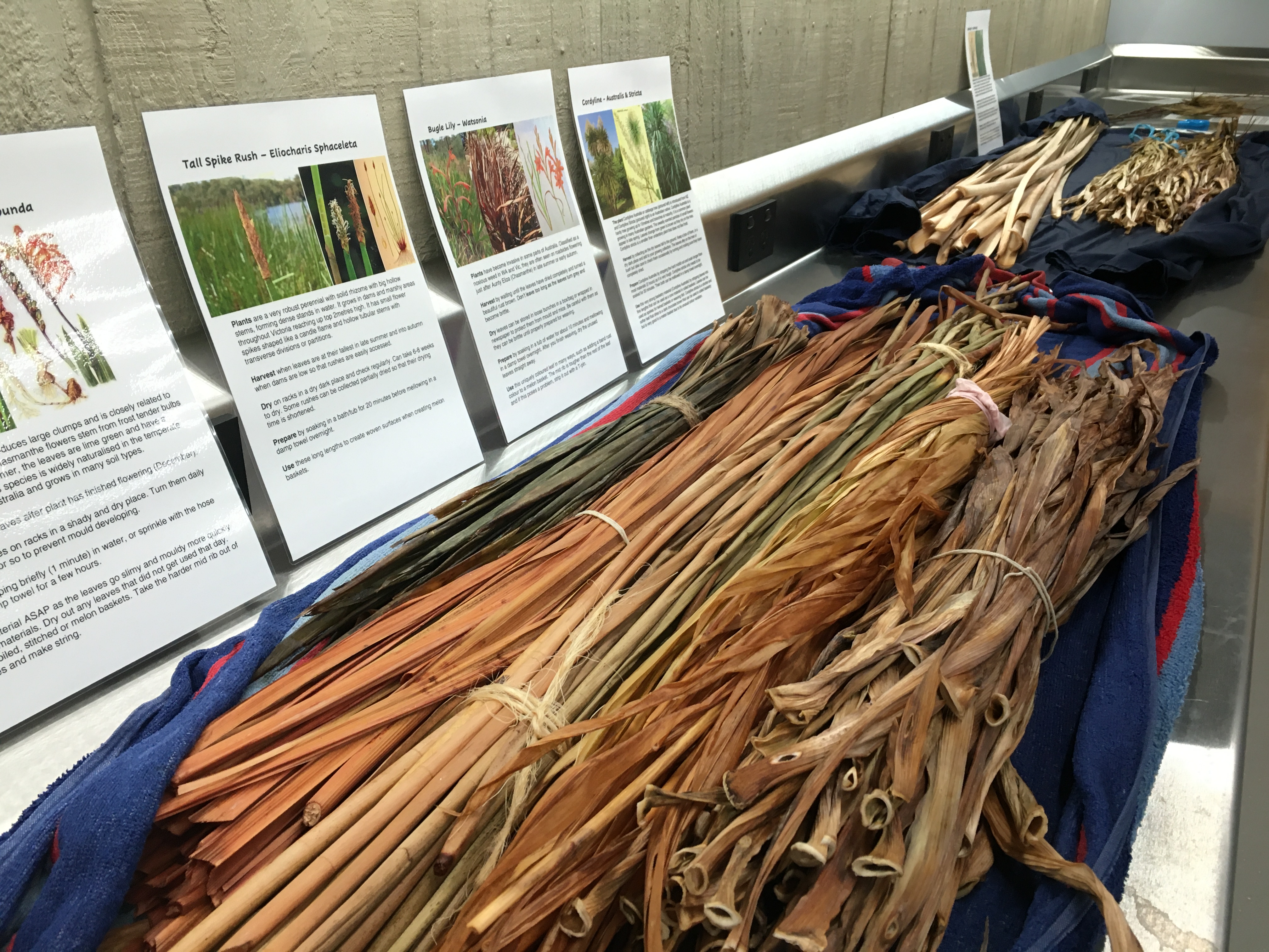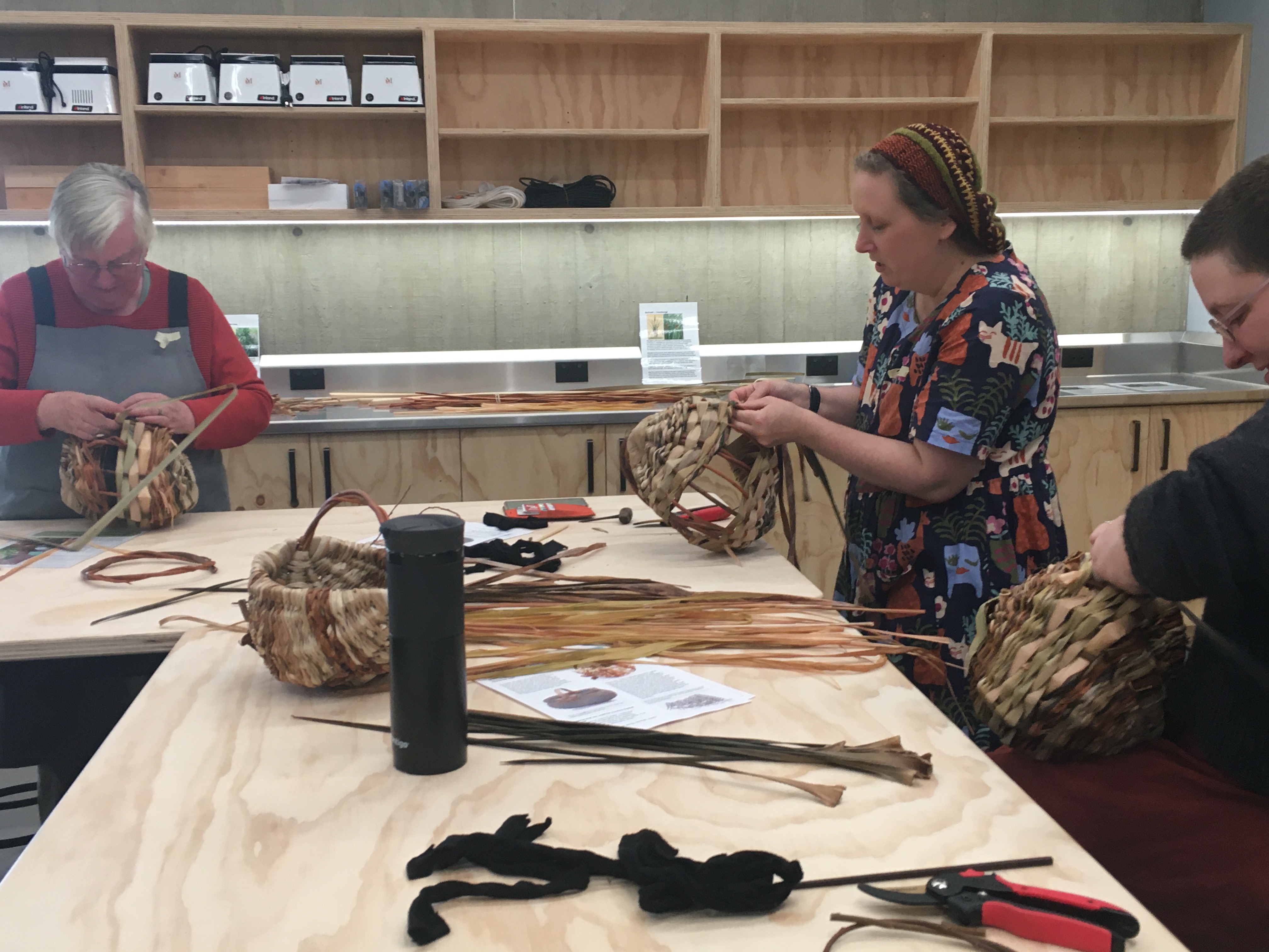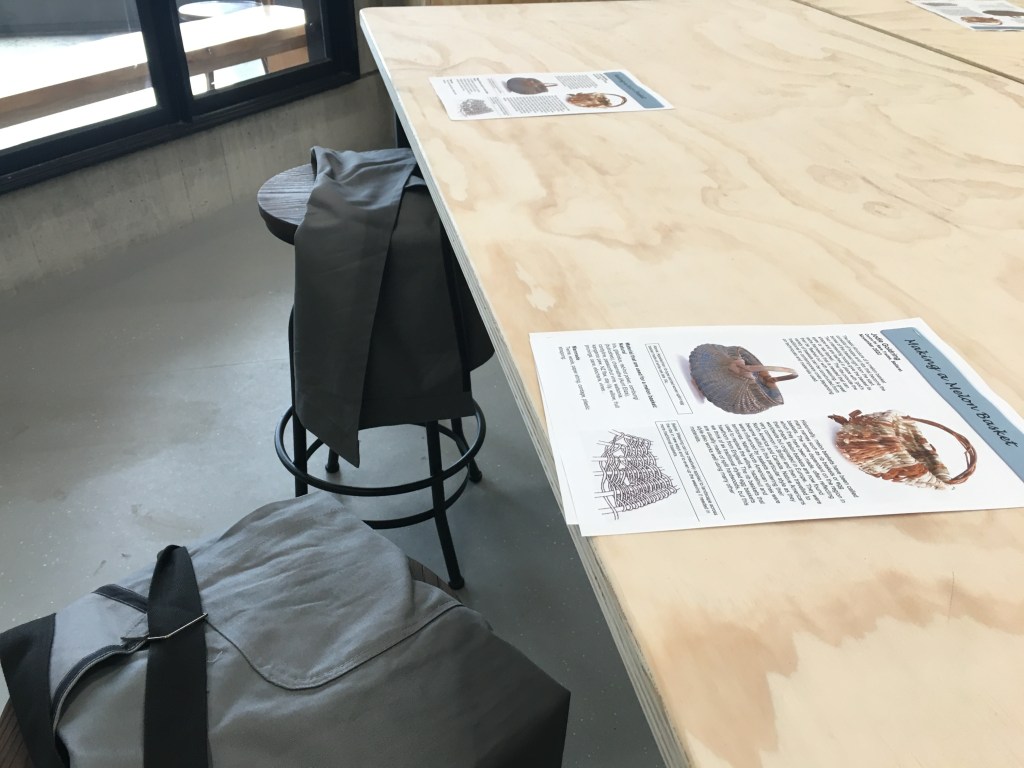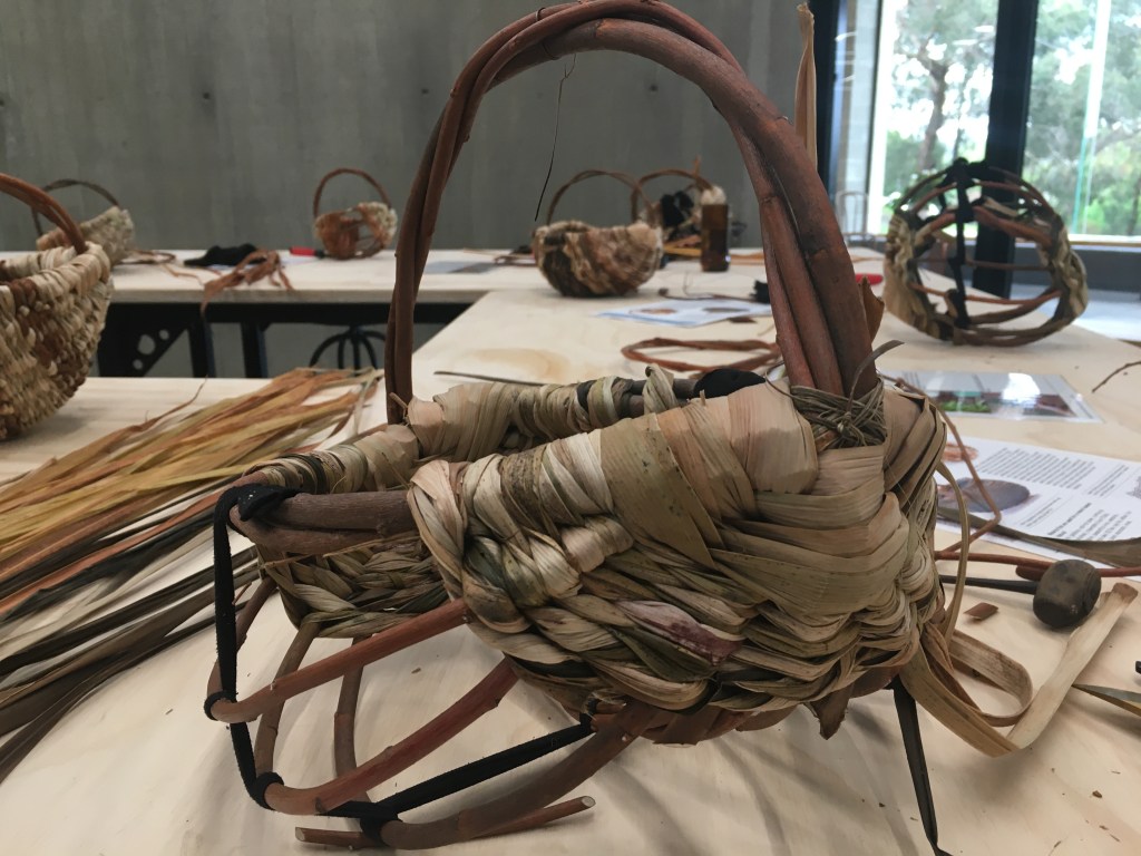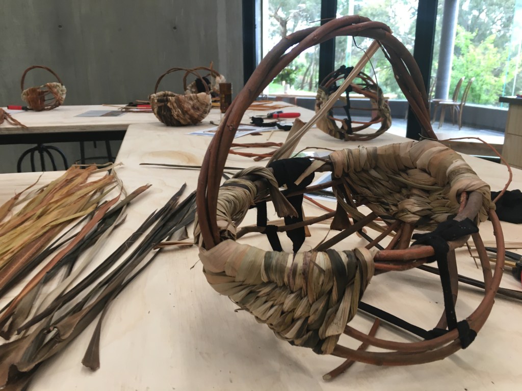 I apologise for more posts than usual, but I am excited about teaching at the NEW Rare Trades Centre in Ballarat! My first workshop was held yesterday and students and teacher alike were impressed with the facilities at the Centre. Participants came from all over Victoria (Bendigo to Bunyip) to learn how to make a Melon Basket. Manager Deborah Klein was there to welcome everyone, acknowledge Traditional Owners, talk about the Centre and give a tour. Two volunteers made everyone feel spoilt by serving us morning tea, including lovely cakes provided by Kittely’s. We were able to use crockery from 5 local Ceramic Artists that were commissioned by the Centre, which demonstrates the Centre’s dedication to best practice. Here are photos from the day…
