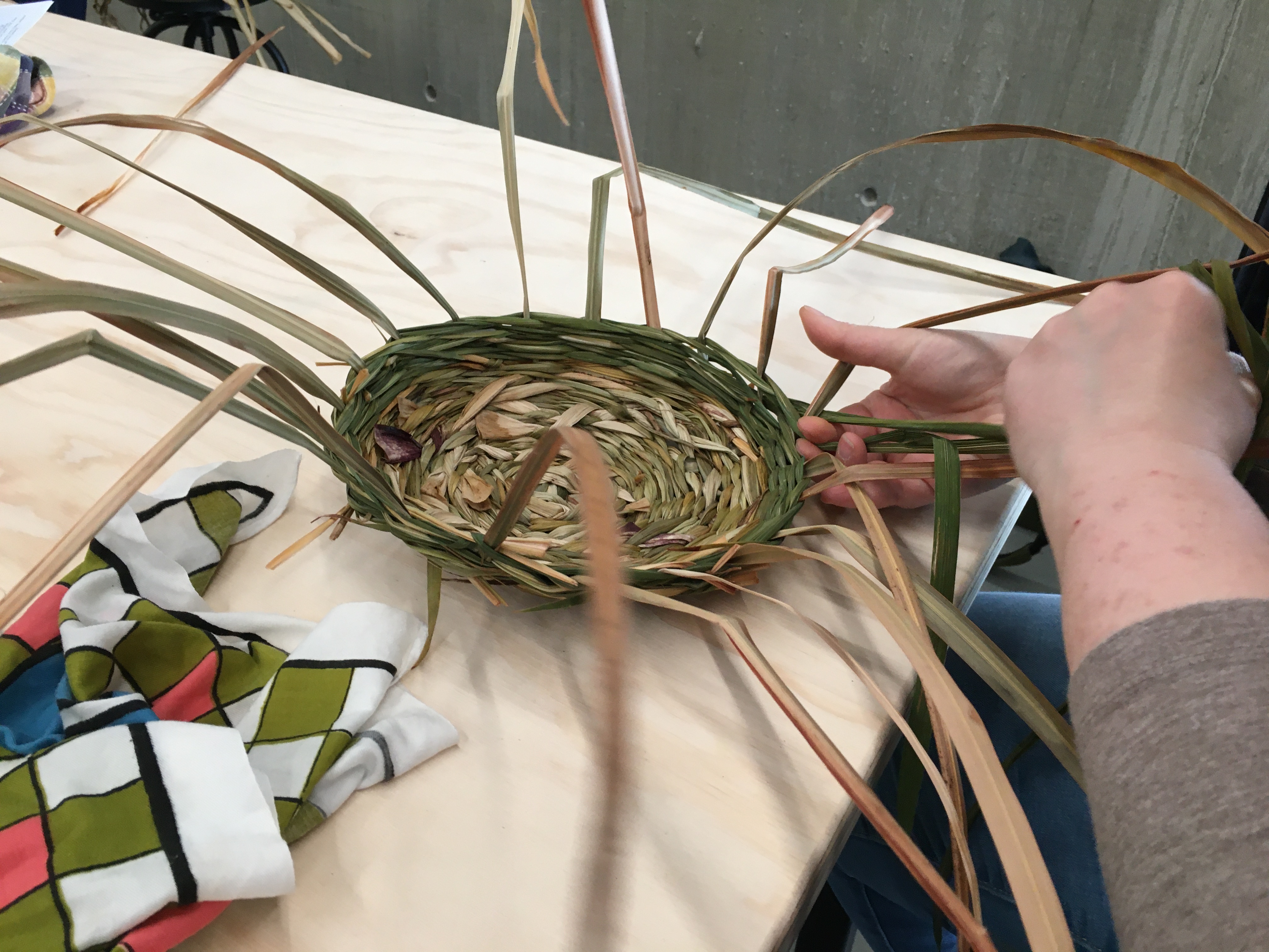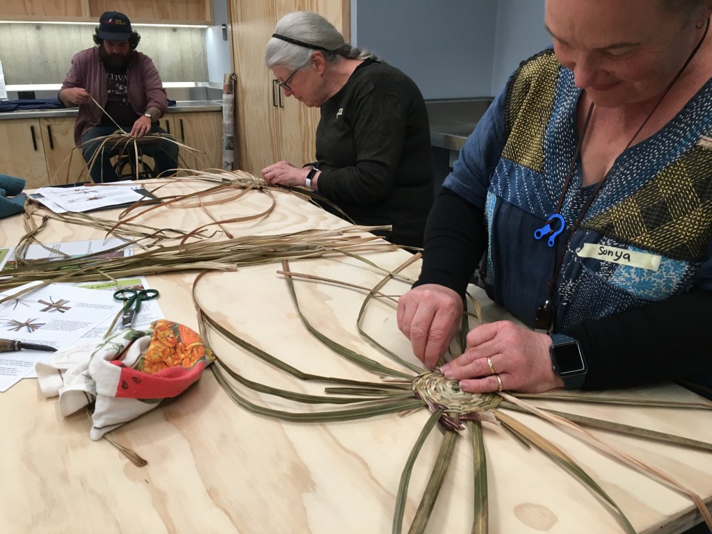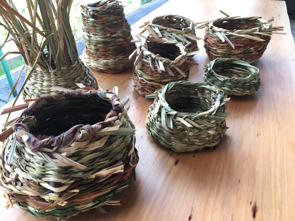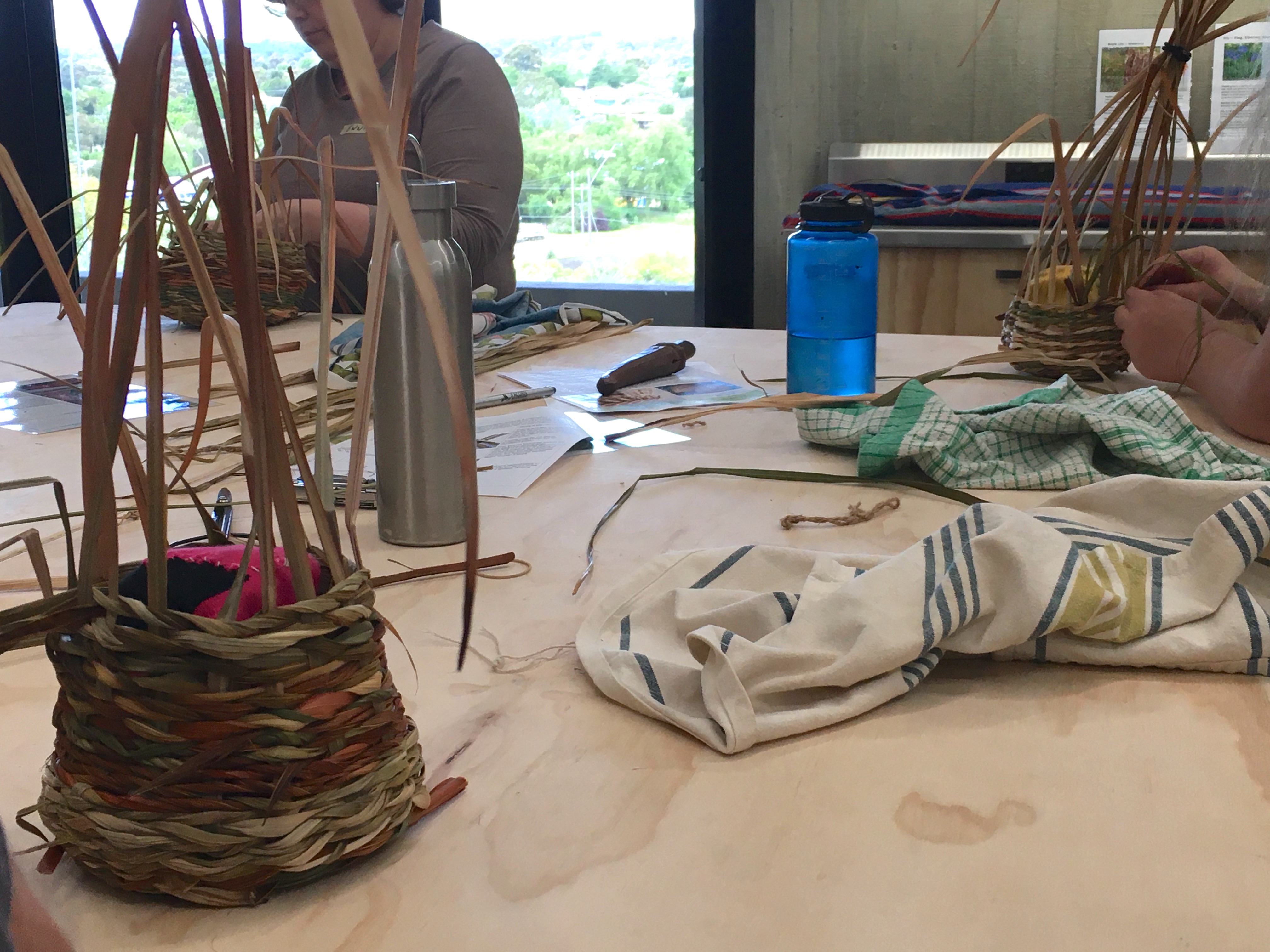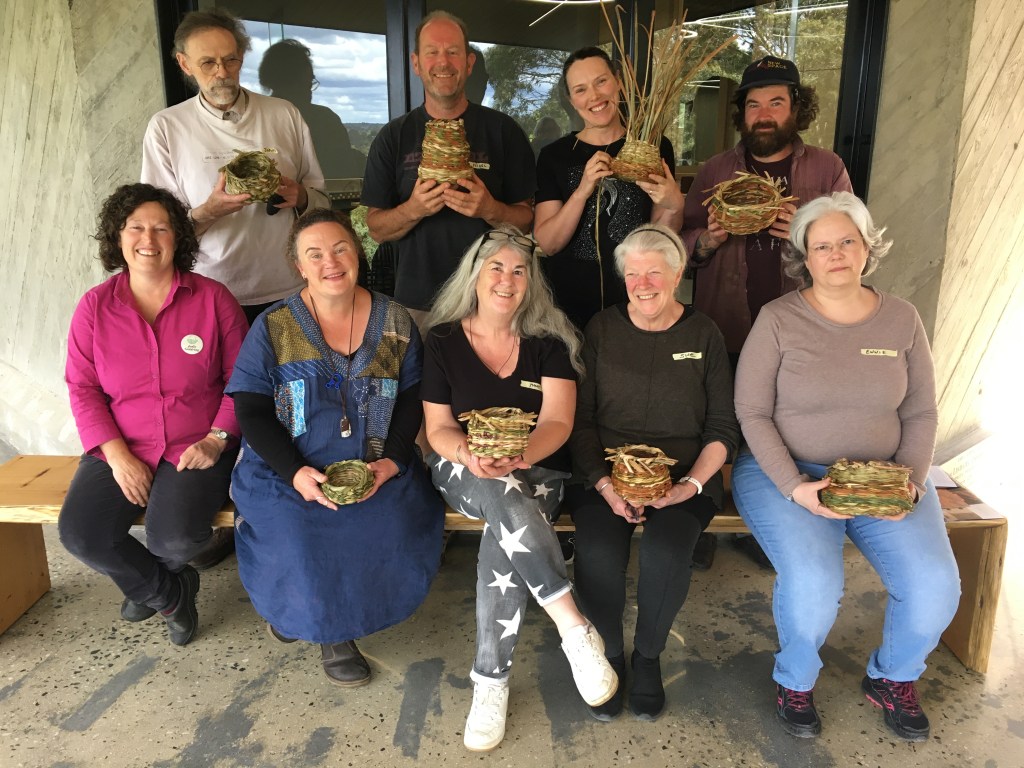 I facilitated my last basketry workshop for the year on Sunday November 27 in Ballarat. Participants used long tough dietes leaves for the stakes and strappy fibre such as red hot poker, red and gold watsonia and Siberian iris for the strands of their twined baskets. There was great diversity in the shape, size and colouration of baskets that were created in this workshop. Everyone managed to finish their basket in the one day workshop with the last rolled rim created after the group photo was taken. Kirsty wanted to take a bit more time to shape the neck of her basket with care. I was pleased that participants finished their baskets in a staggered timeframe, so that I could give them all the support they needed with the rolled rim in a relaxed way. It can be stressful to finish the day with the most challenging step of making the basket! I am now starting to collect plant fibre needed for next years workshops as Summer into Autumn is the perfect time to do this. Thanks to Olivia for helping me pull up my daffodil and jonquil bulbs that were starting to get overcrowded in my garden. I will use the leaves for weaving and she plans to take most of the bulbs home and create a gorgeous wildflower field. Merry Christmas and a Happy New Year to my friends and followers. I hope to be rested and rejuvenated over the festive season and back onboard to share all things weaving in 2023…