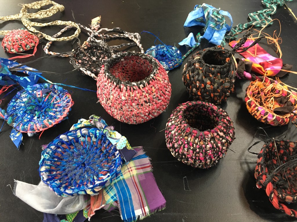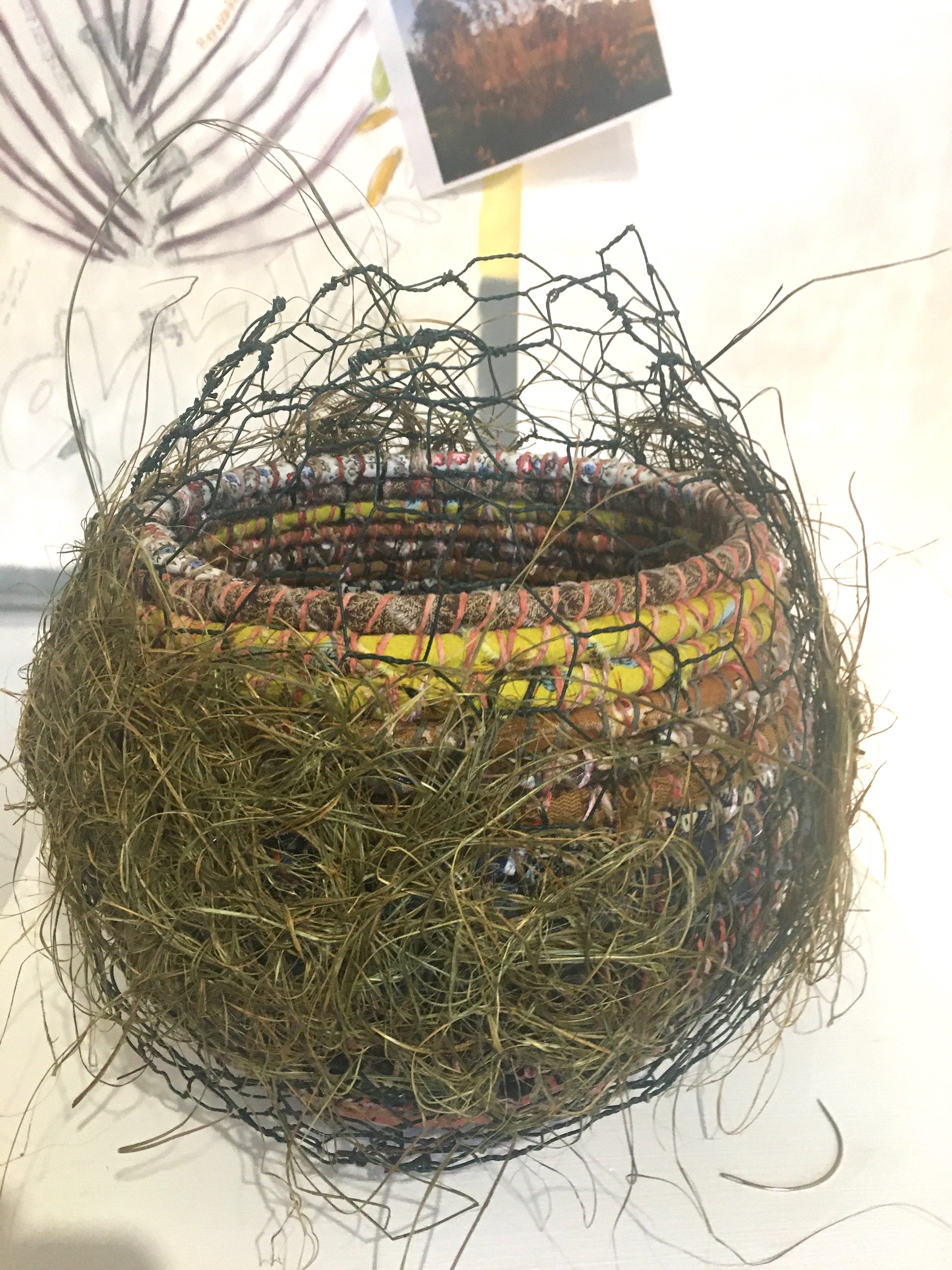 2. It has been fab! So great to spend 2 weekends chatting all things sculptural basketry! Really enjoyed tossing around ideas about Light and Dark as well. I had a community coiled basket on the go yesterday and many people created a few stitches using buttonhole stitch…