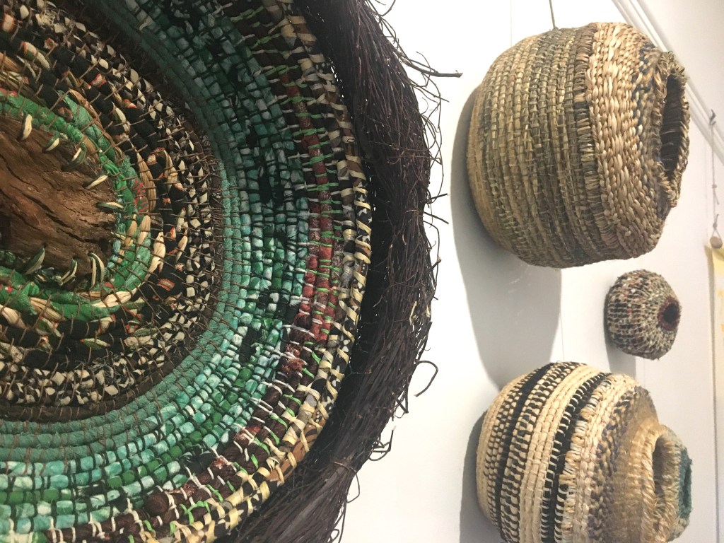 Last weekend at Craft Lab we had a large number of people visit the Mining Exchange in Ballarat. I demonstrated skills by splitting NZ flax into a fine “flax floss” and stitching it onto a chicken wire framework to finish a double basket. I also invited the audience to contribute to brainstorming the theme of Craft Lab (Light and Dark) through writing and drawing. Through the week I ran a 3 hour coiled basketry workshop for a group. There was a glamorous dinner called “The Great Takeaway” where diners got to take home their handmade crockery and napkins. This weekend I am coiling a basket using recycled and preloved shoelaces! I will assist visitors to coil a community basket and we will continue brainstorming Light and Dark. Not to mention the Back-to-Back Challenge happening on Saturday that will see the shearing of some sheep, wool carded, spun and knitted into a jumper all in one day! I hope you can join us. How could you resist?