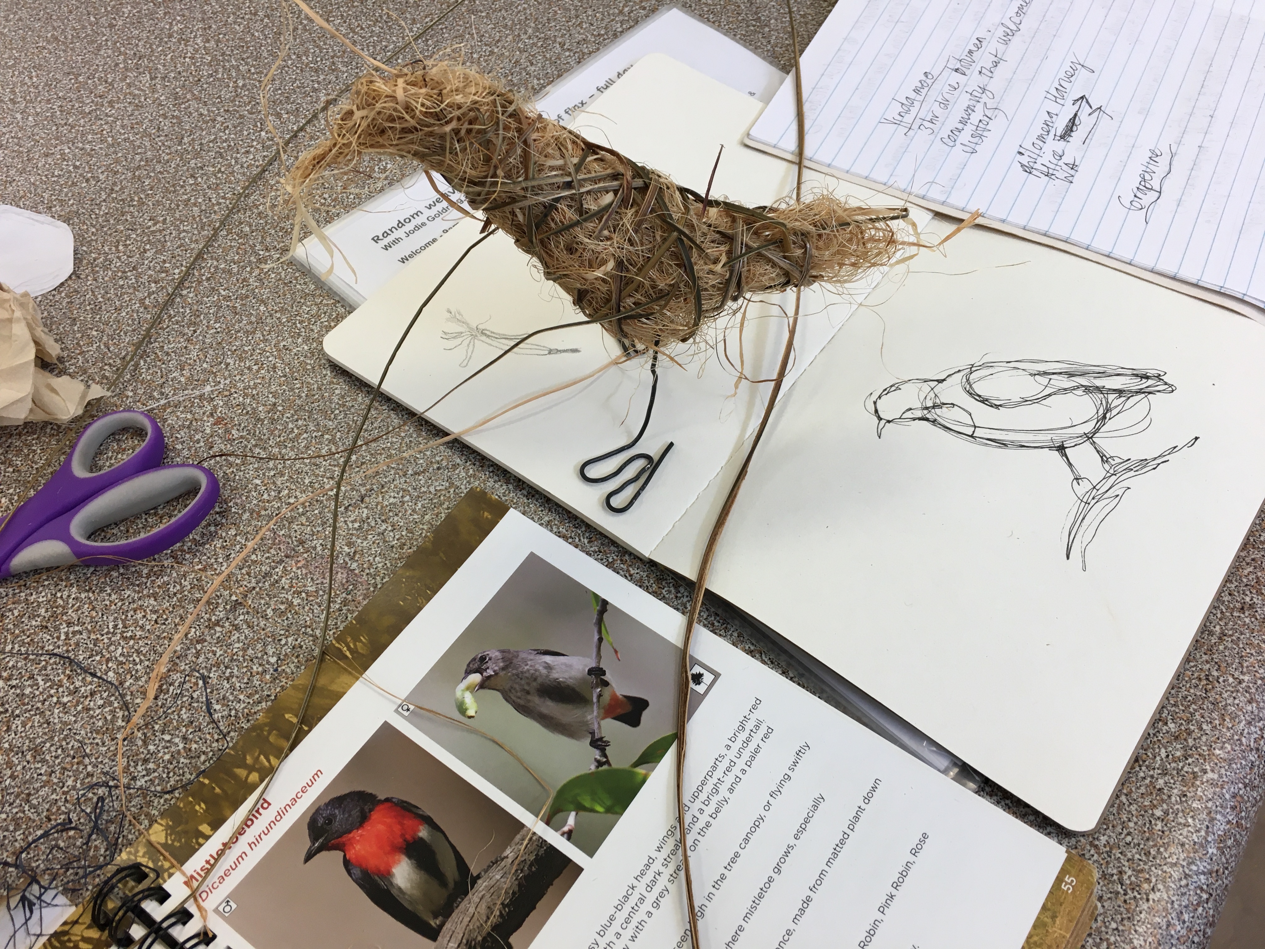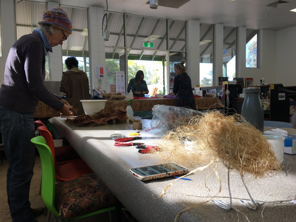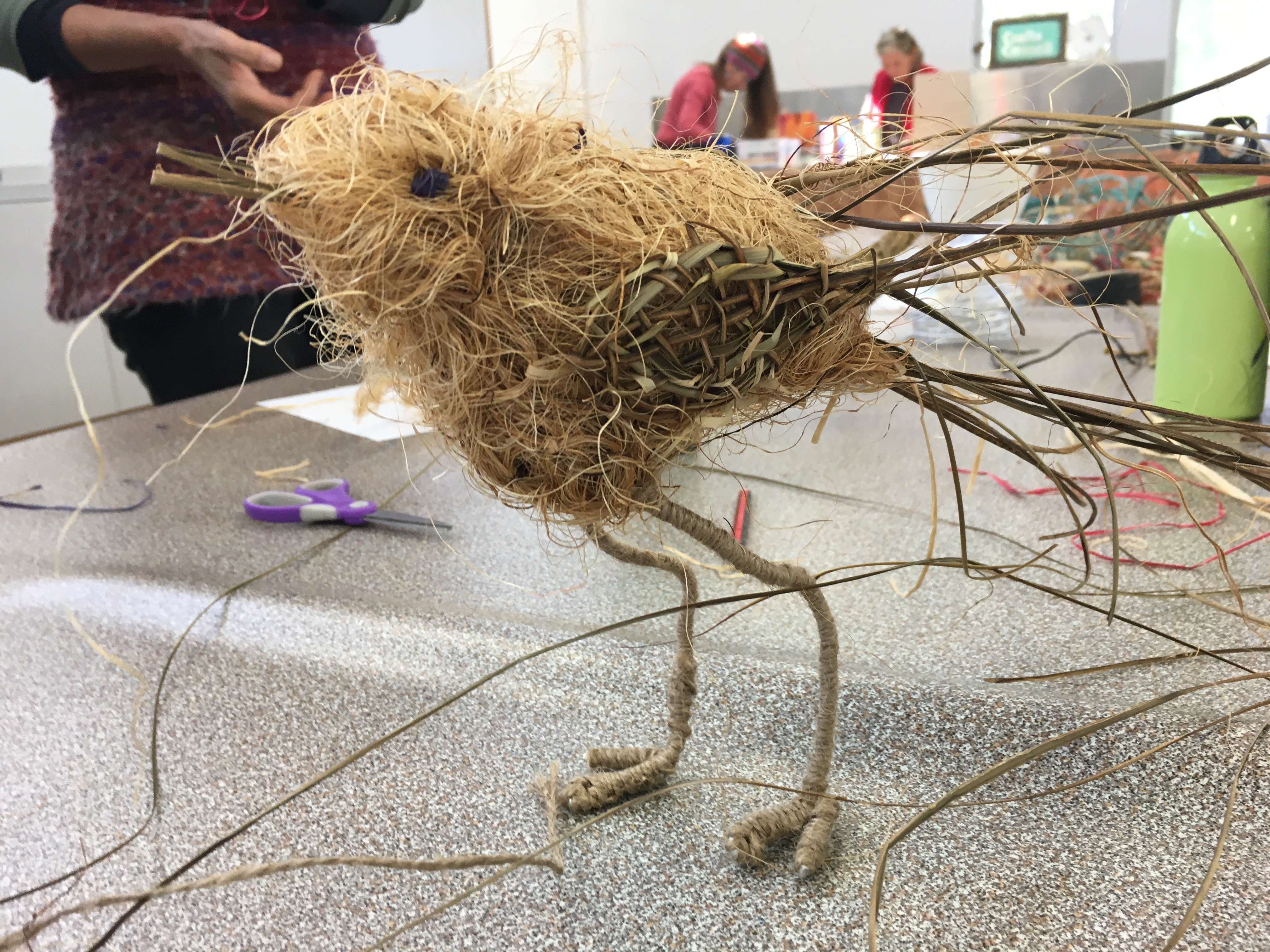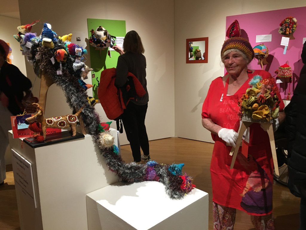 What an incredible trip I had to Alice Springs for the Beanie Festival. Participating crafters sent 6500 beanies to the festival this year that were exhibited throughout the Araleun Arts Centre! I really enjoyed facilitating three bird weaving workshops next door at Central Craft, as I felt enfolded in a dynamic creative space. There was a buzz of teachers and participants who were engaged in crafting activities such as rug making, knitting, eco dying, basketry, raffia hat making, spinning and so much more! Pru Raymond (Master Knitter) and I had fun at the opening night eating, chatting, listening to music and looking at the colourful beanie display. There were volunteers in white gloves that helped the audience try on beanies which added a wonderful performative aspect to the night. I will be back to this inspiring festival that was run on the goodwill of 106 volunteers in 2023.