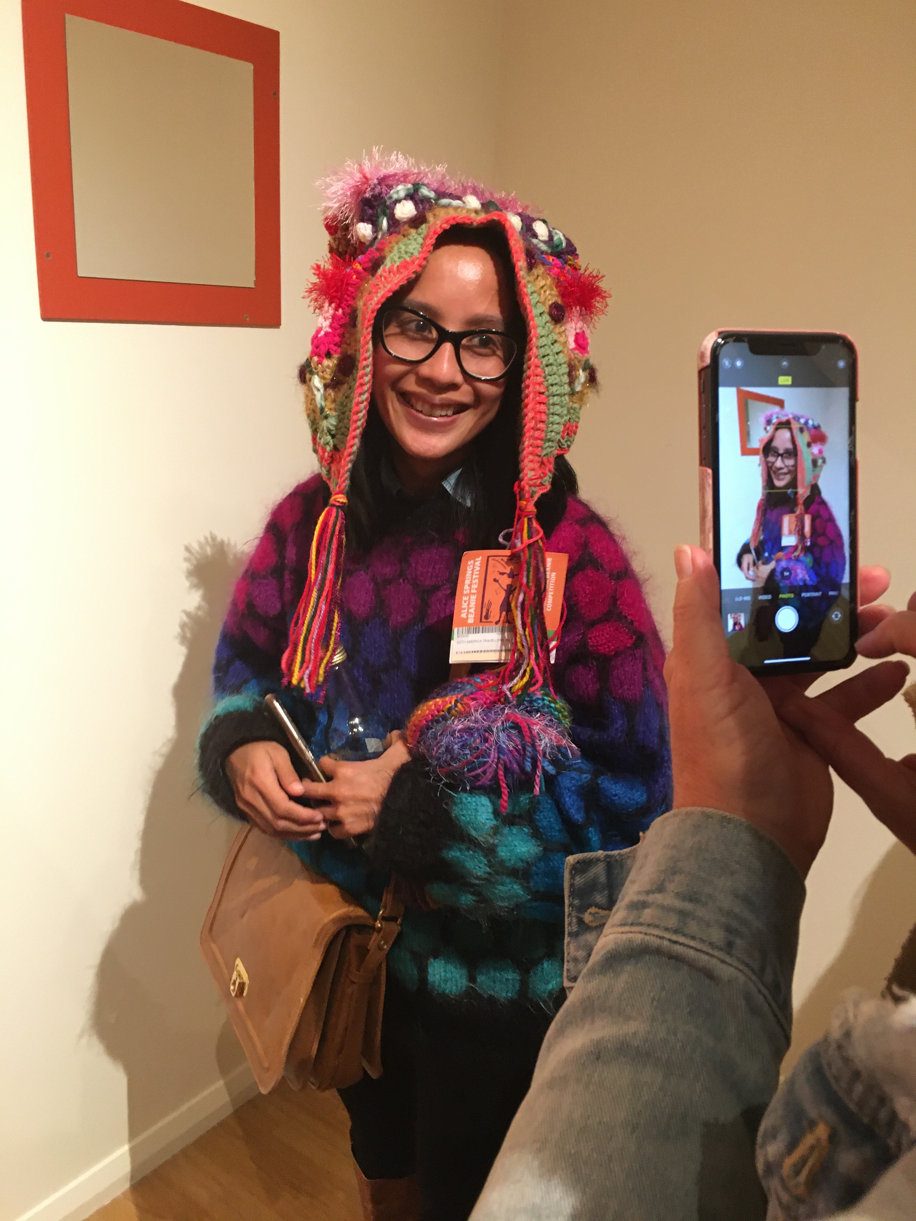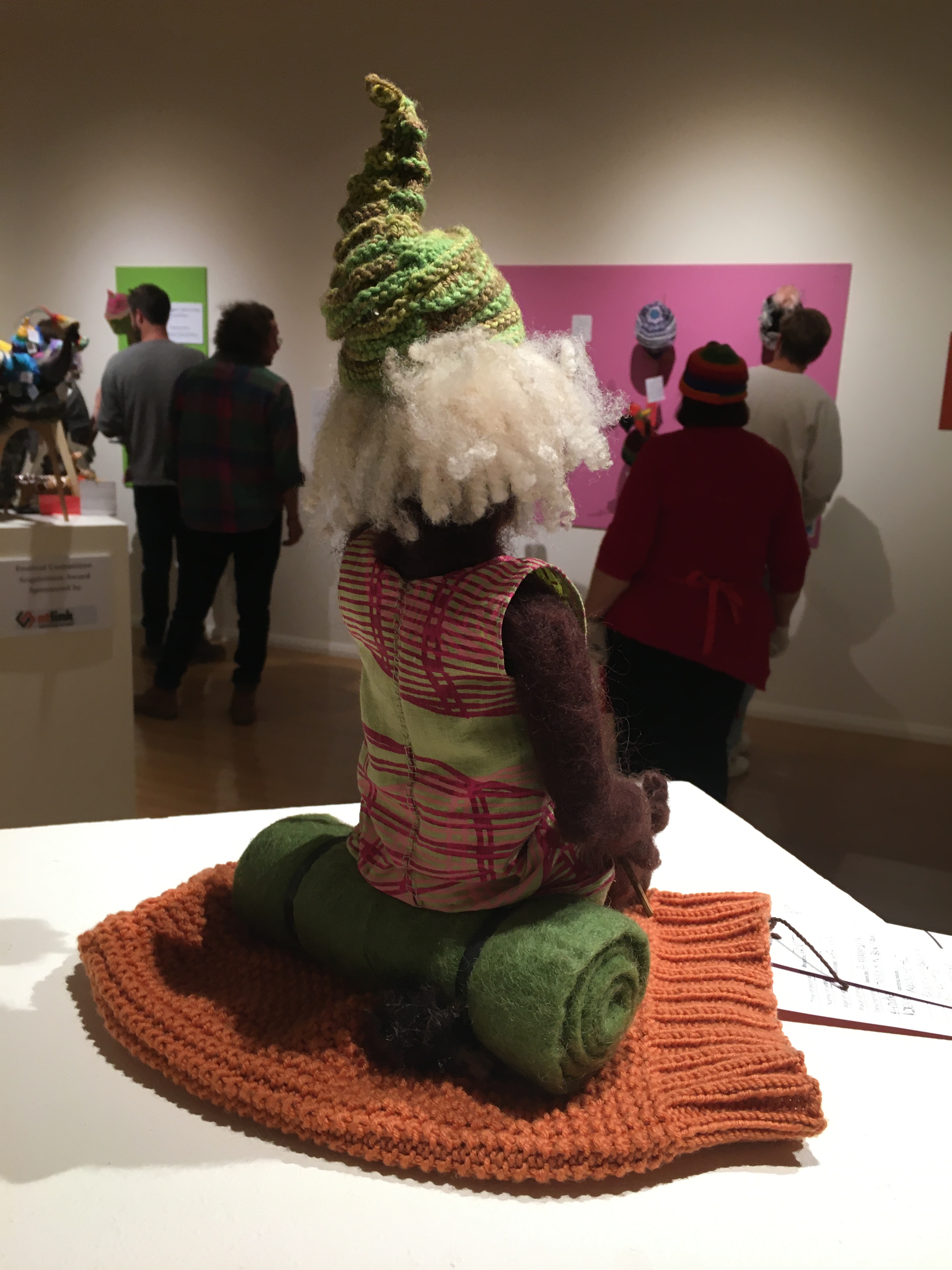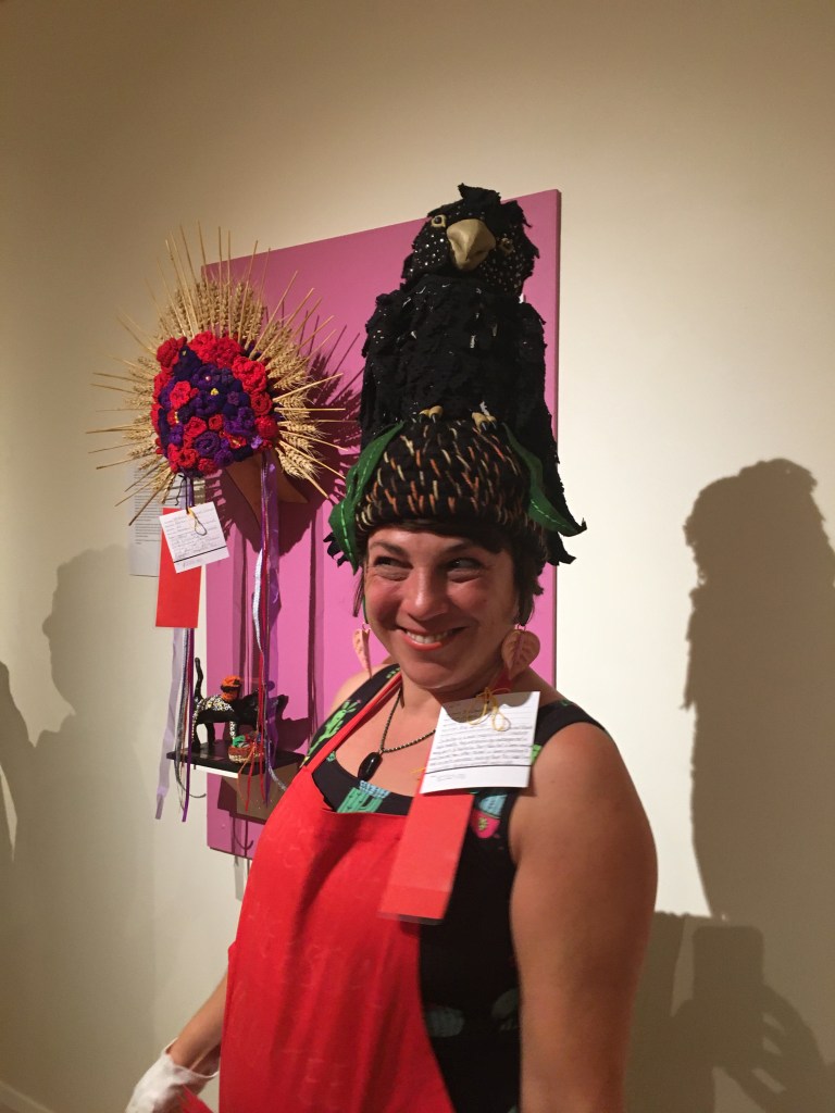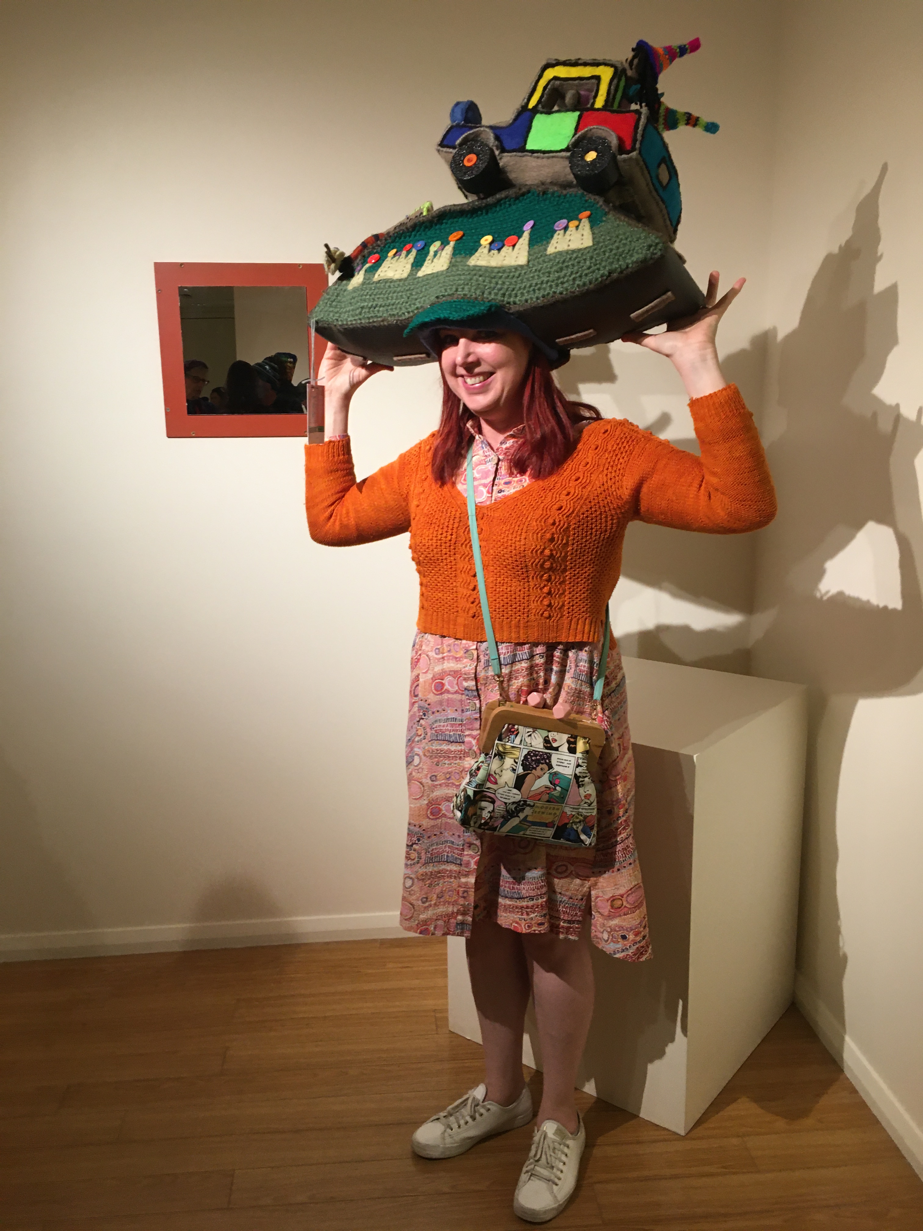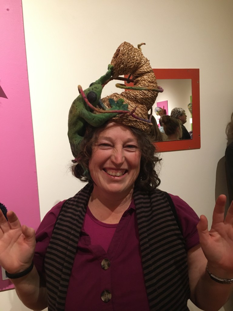 1. It was a wonderful event! Jacqueline Gibson from Attadale in WA made “Kermit and the Boab” which was the gorgeous hat I tried on. Each hat had a label so the audience could see who made the work. I just had a lot of fun trying it on. I picked this hat as the artist has used the basketry technique of coiling plant fibre. Right up my alley!!