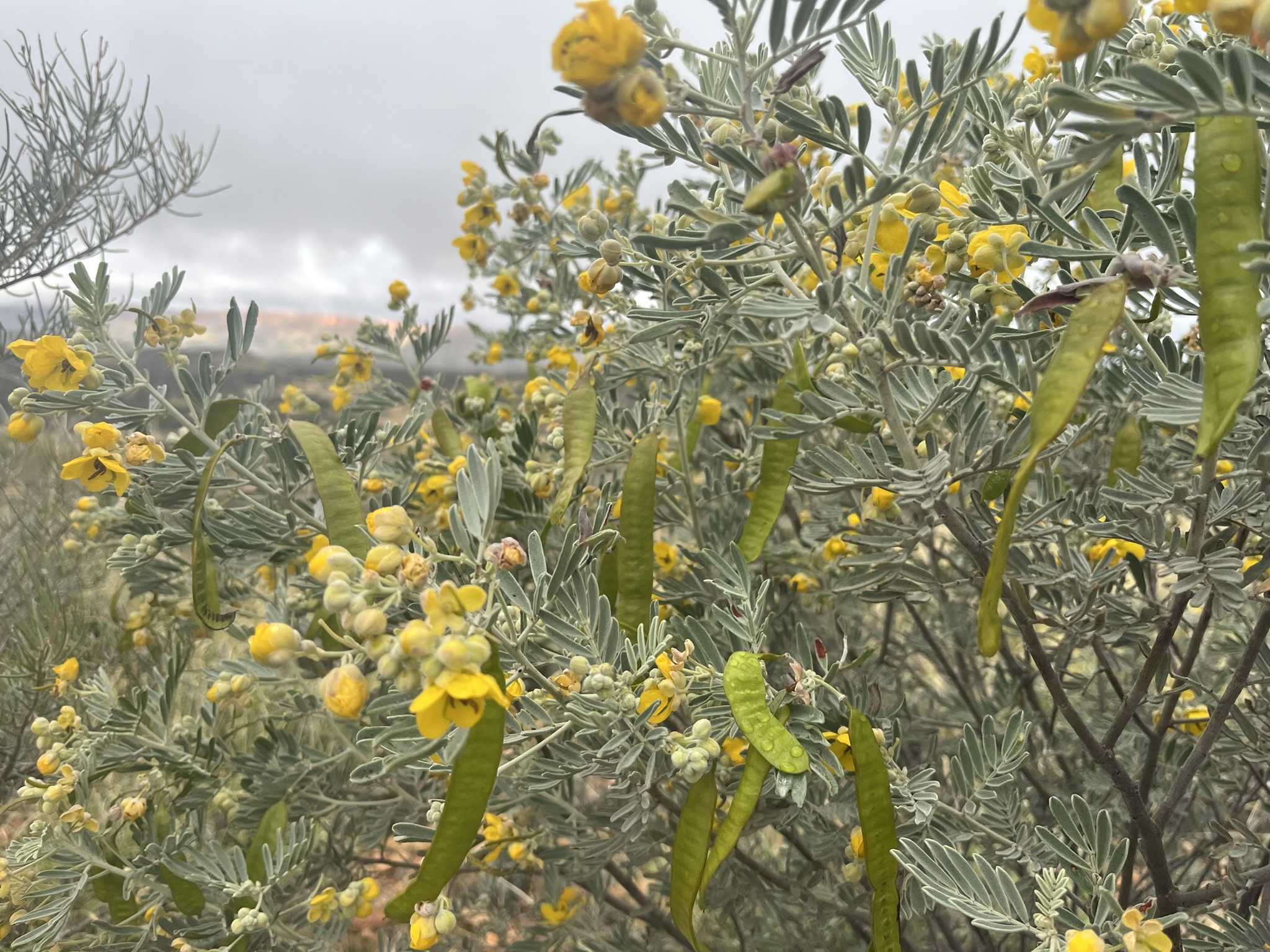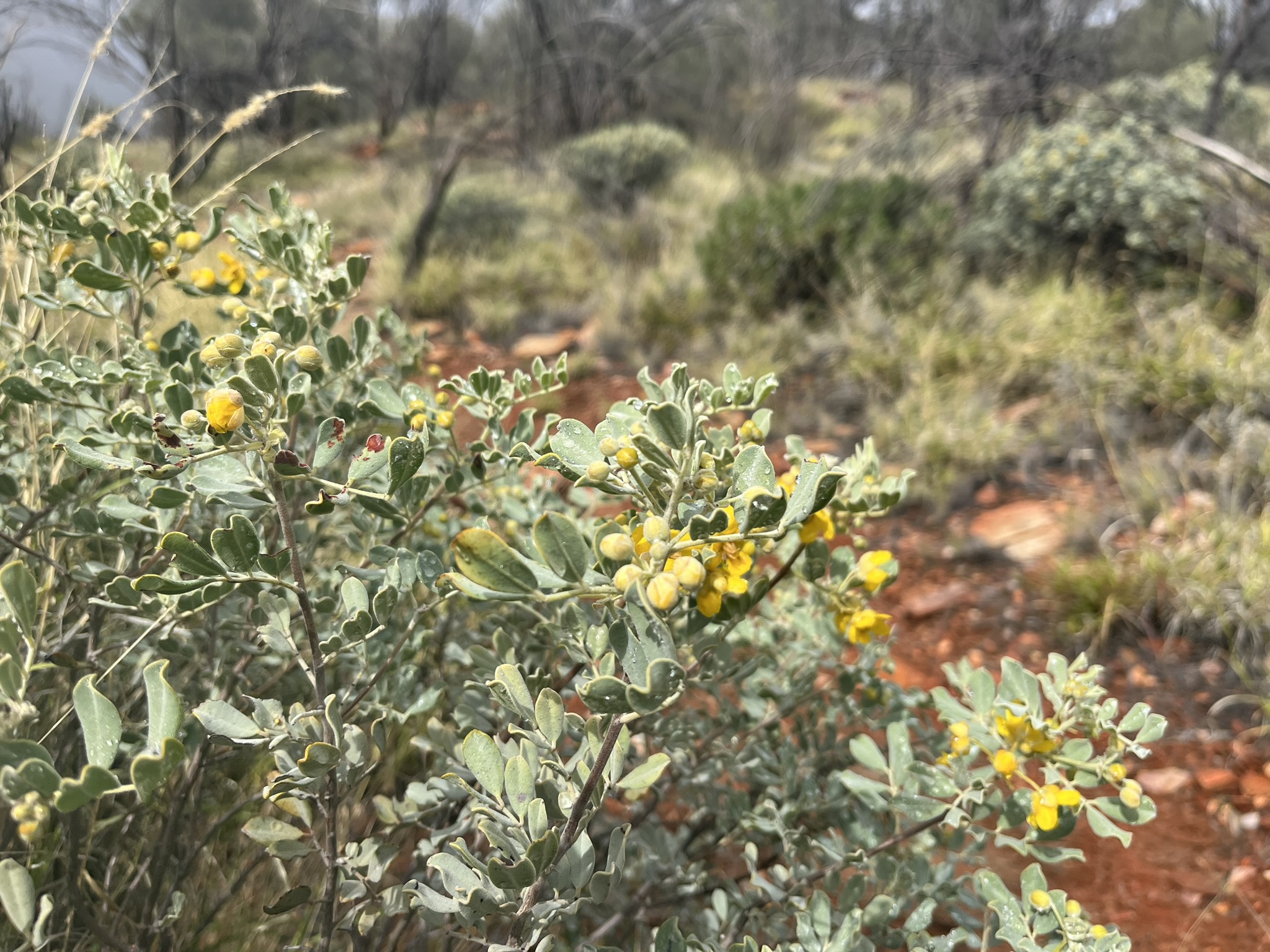 Drawing cassia at Olive Pink Botanic Gardens, Blunt-leaf cassia (Senna artemisioides ssp helmsii)