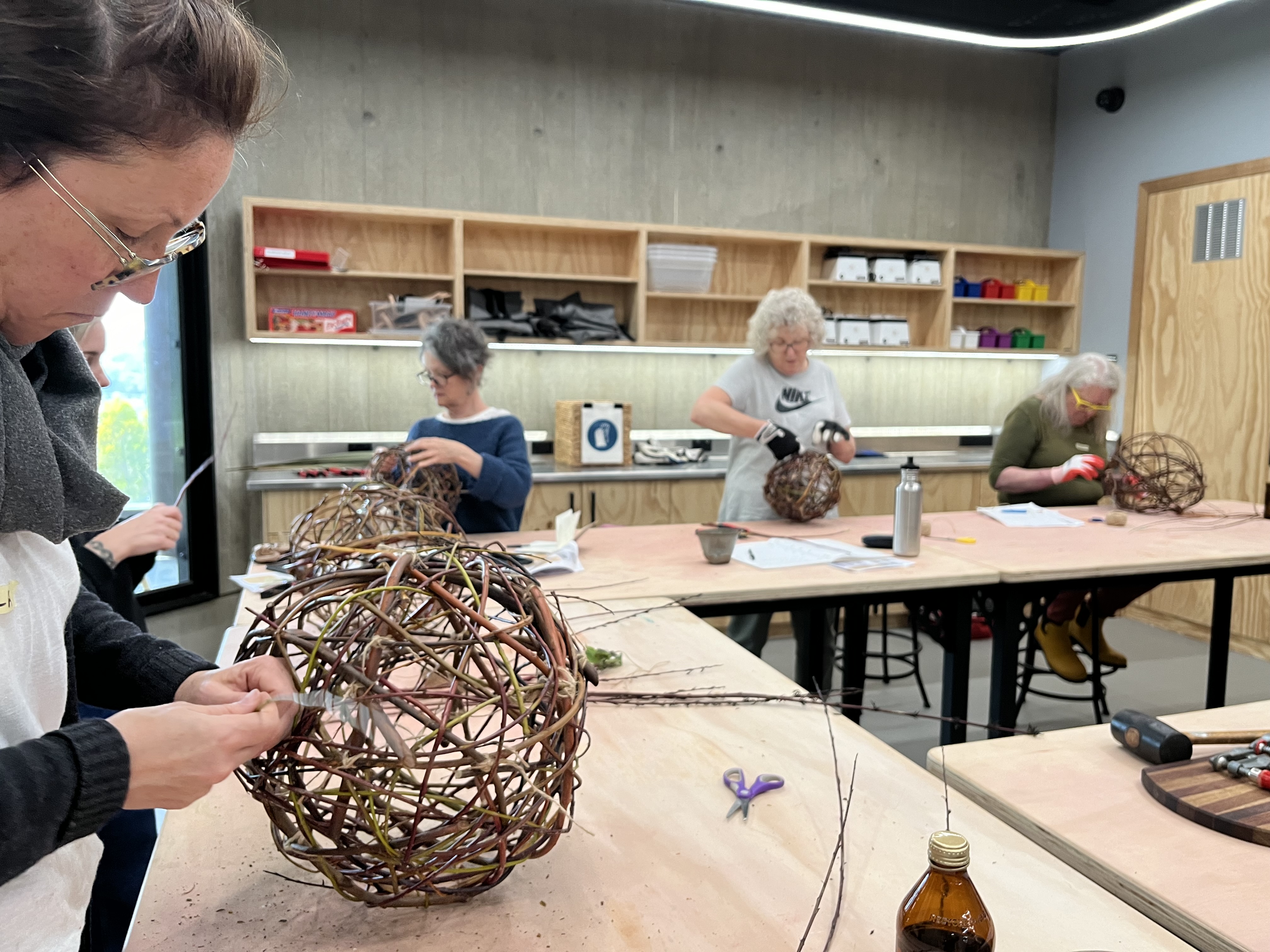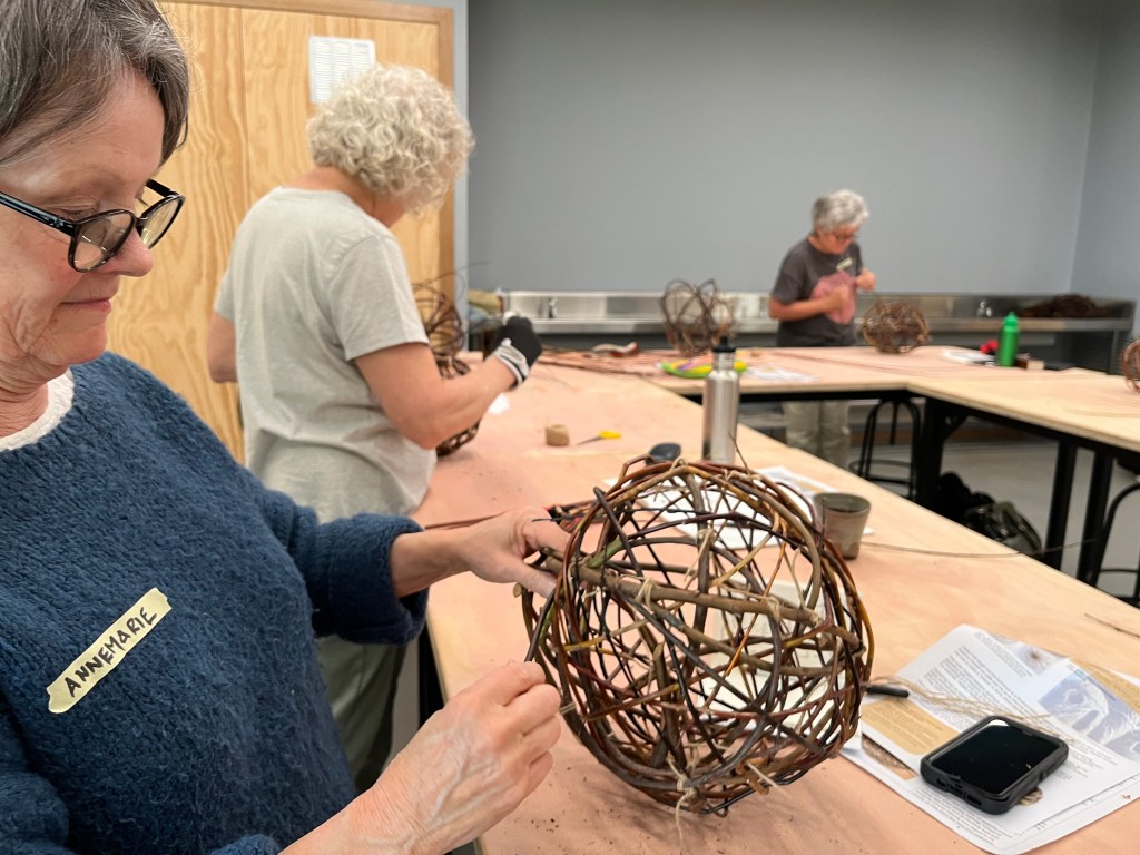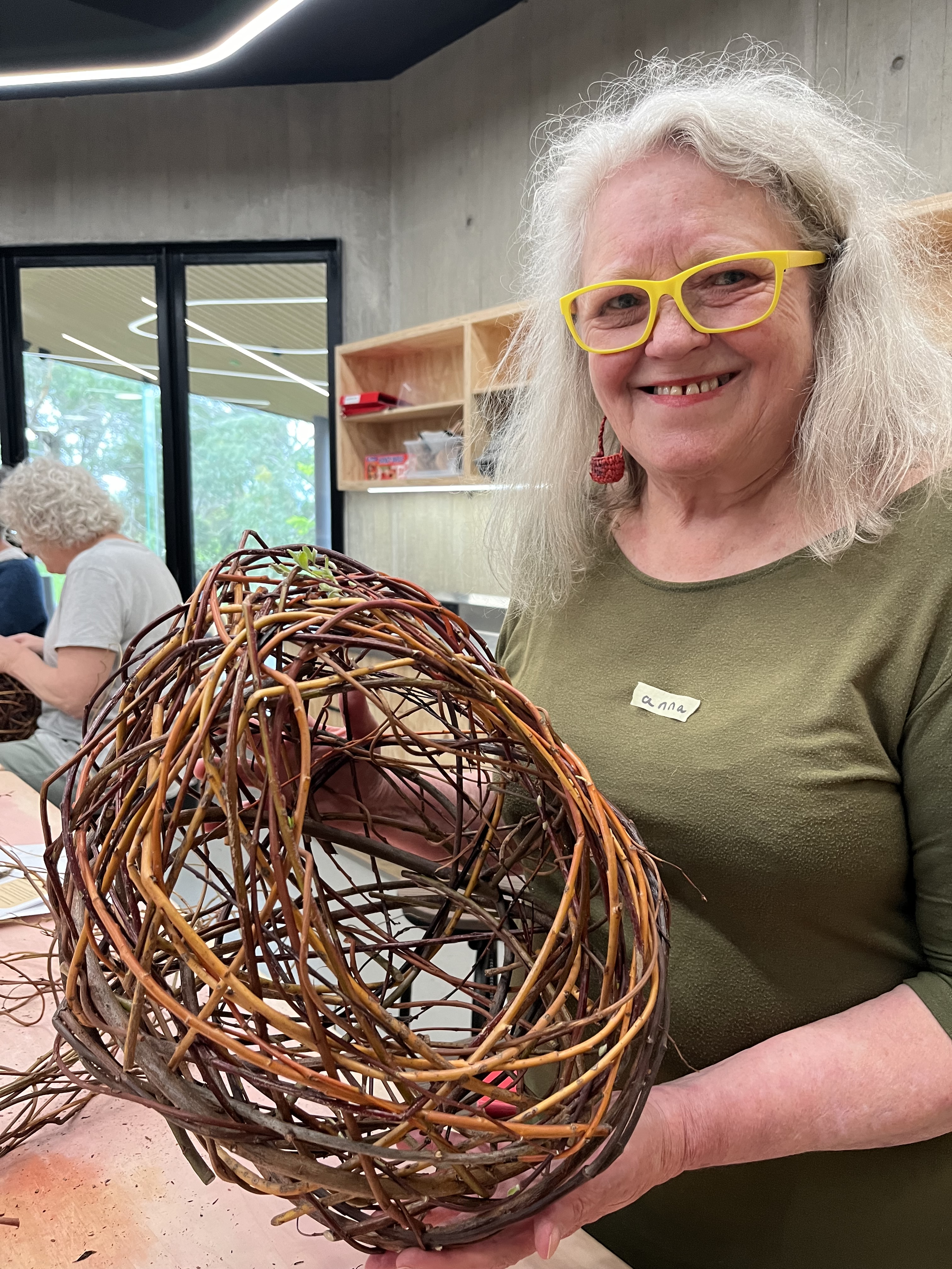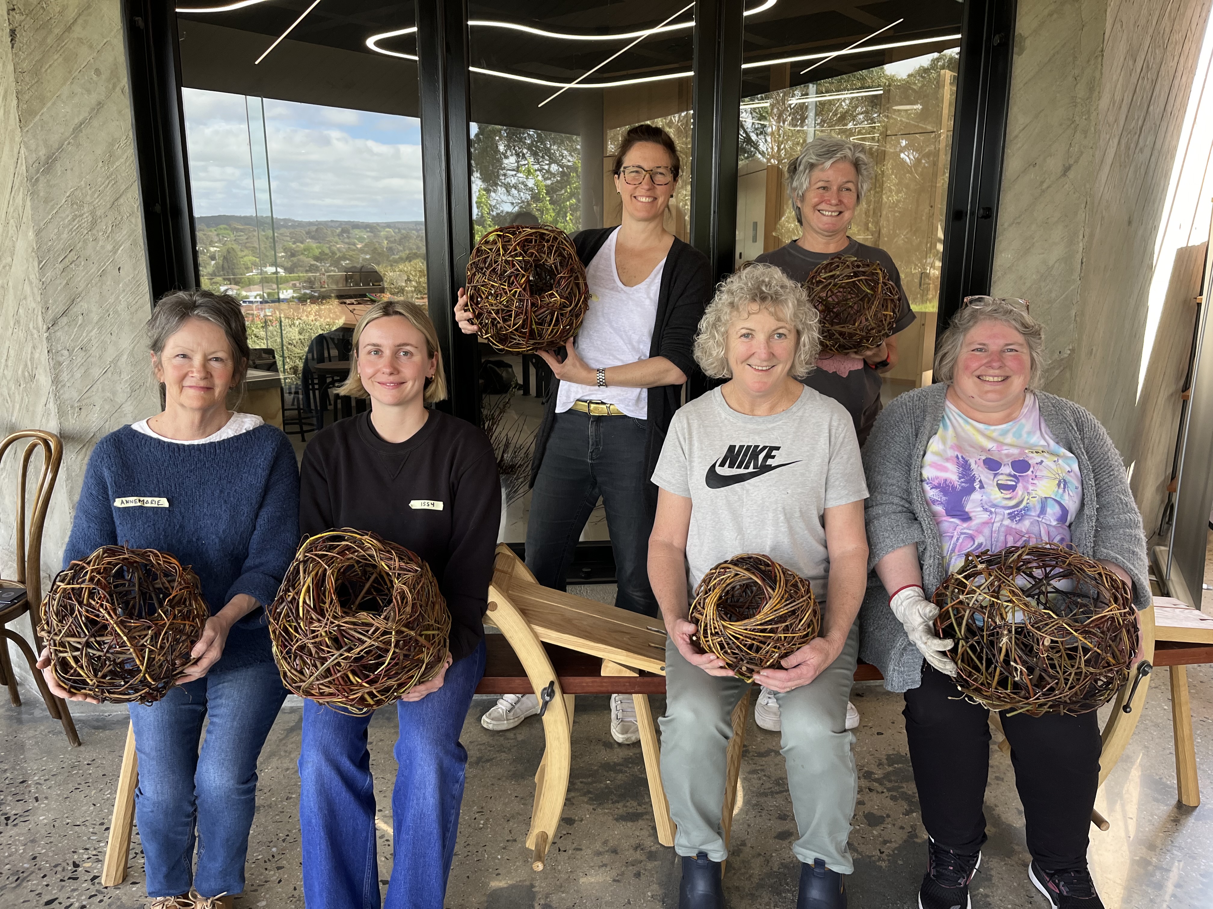 Participants spent the day working with willow and hardenbergia to make their randomly woven baskets. See pictures below…