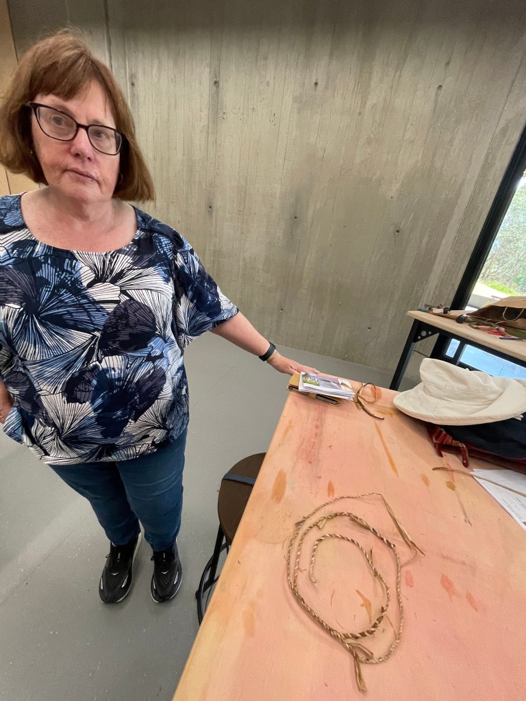 We ended the workshop by learning through making to weave a small hank of string from jonquil and red hot poker leaves. Making string is a great way to see whether a plant material will be useful for basketry. Does it split? Twist? Can we make string with it? A fun way to learn through experimentation and discovery.