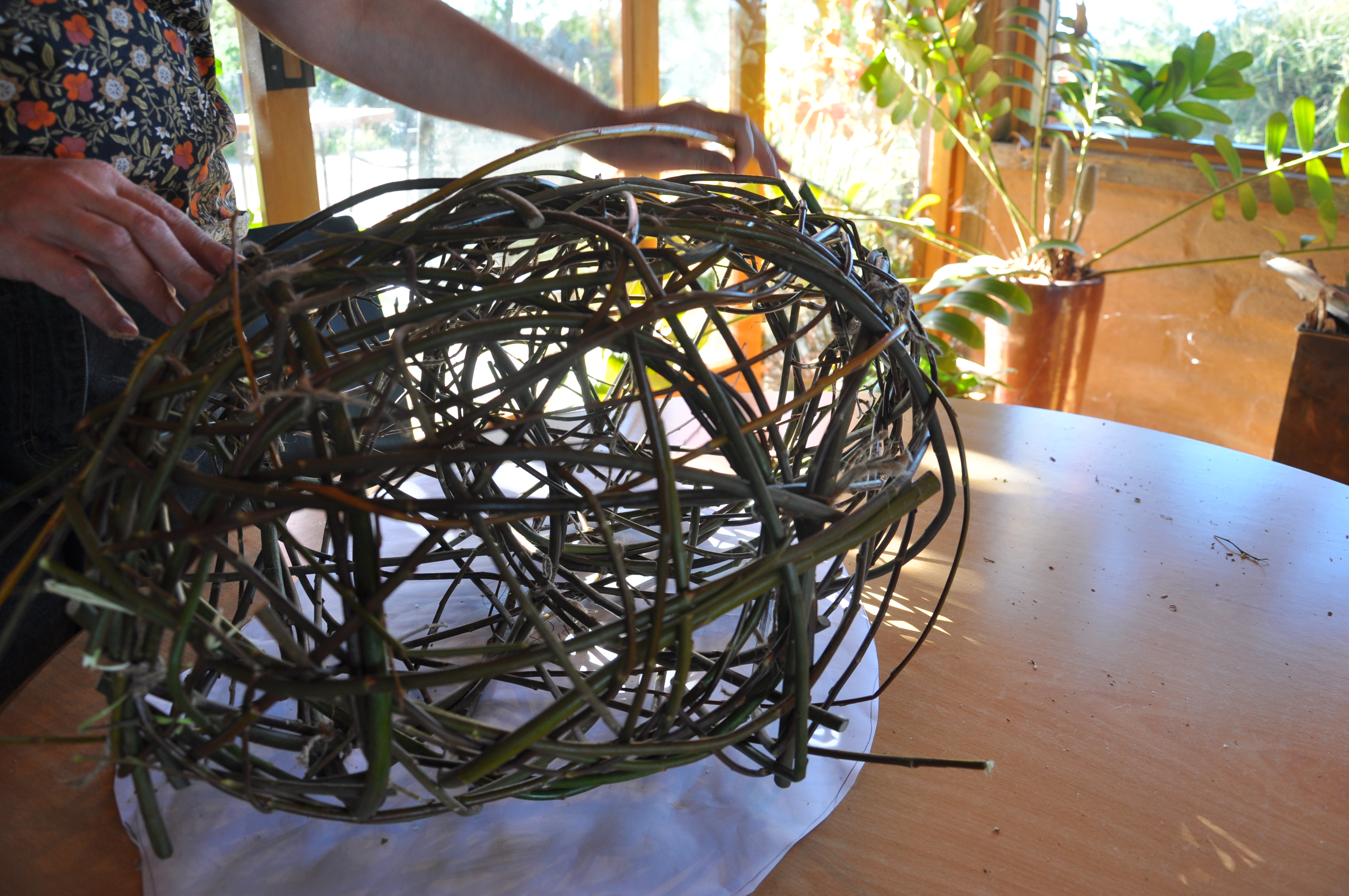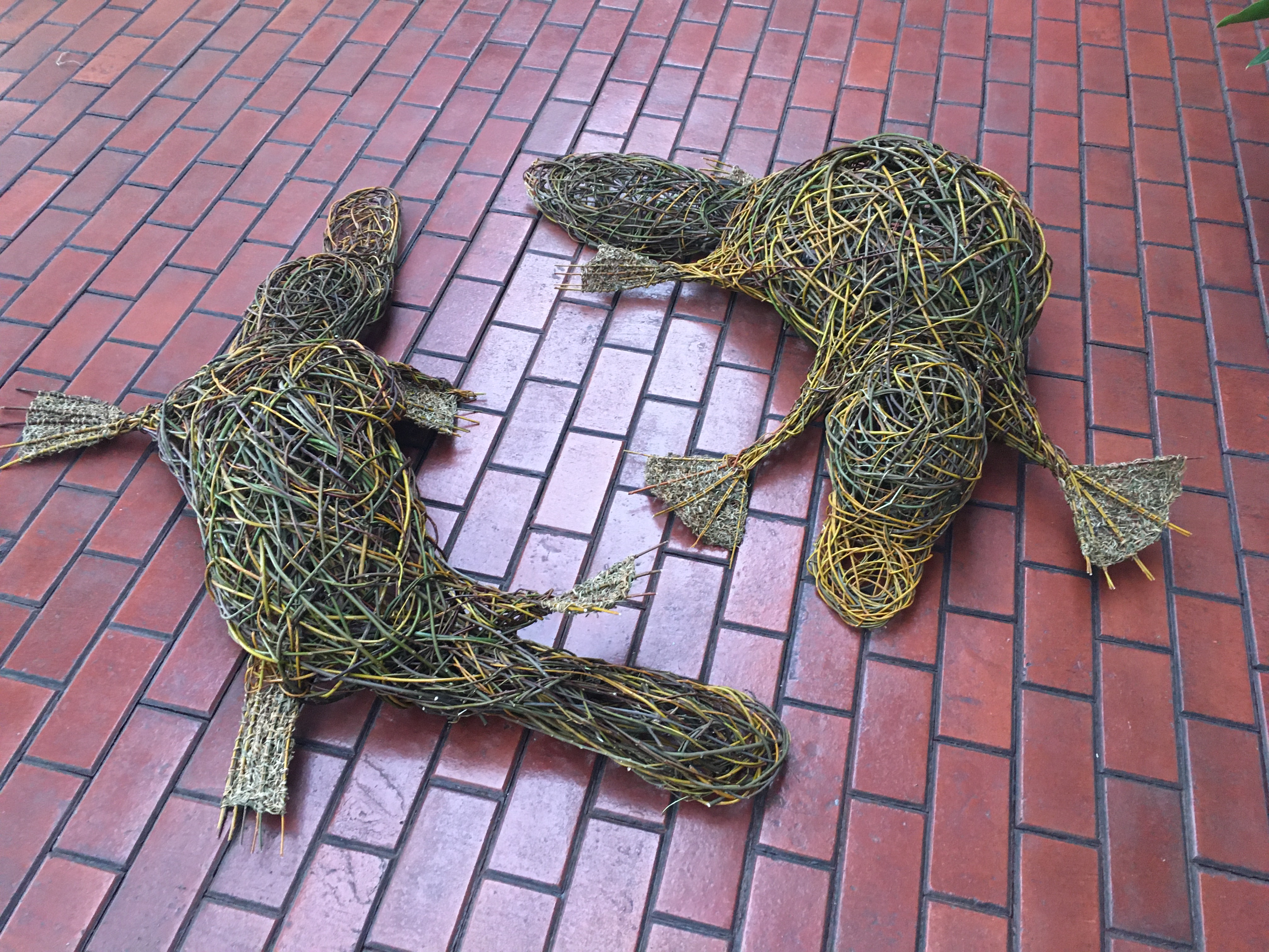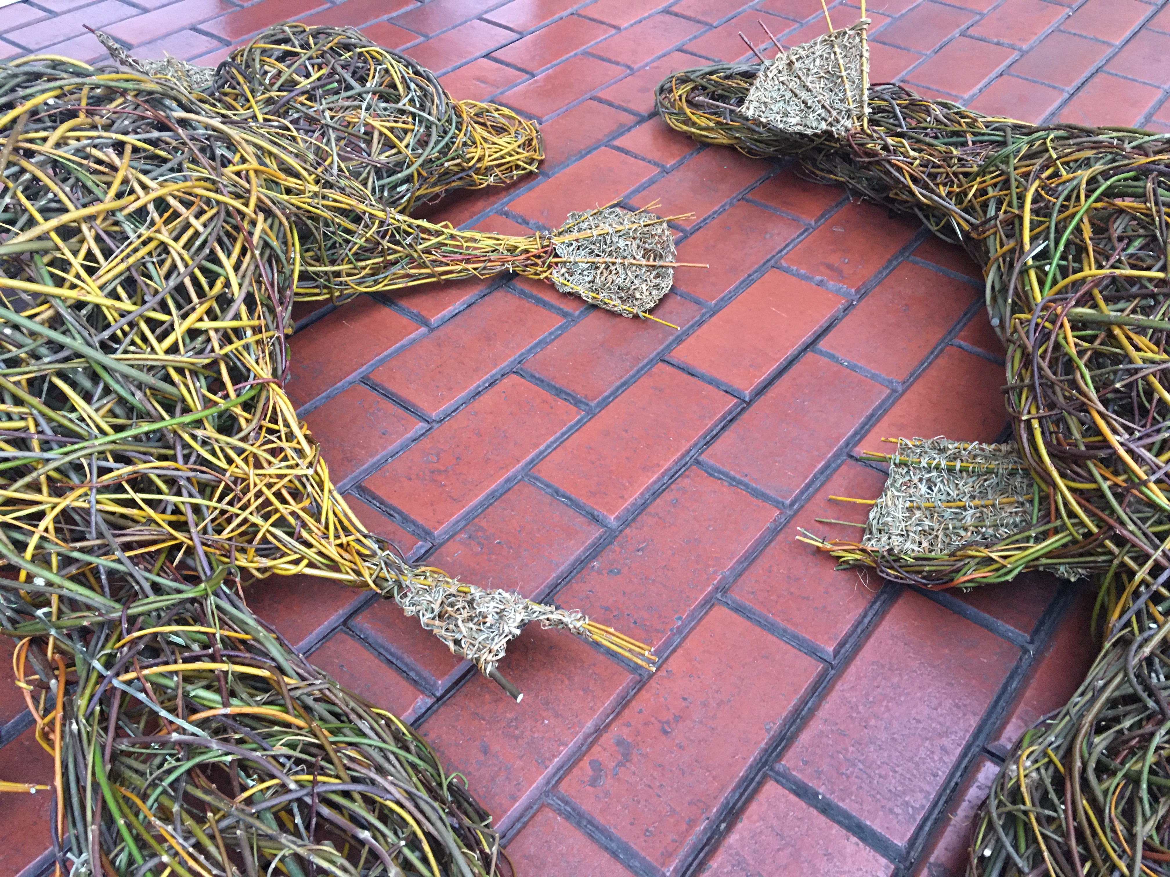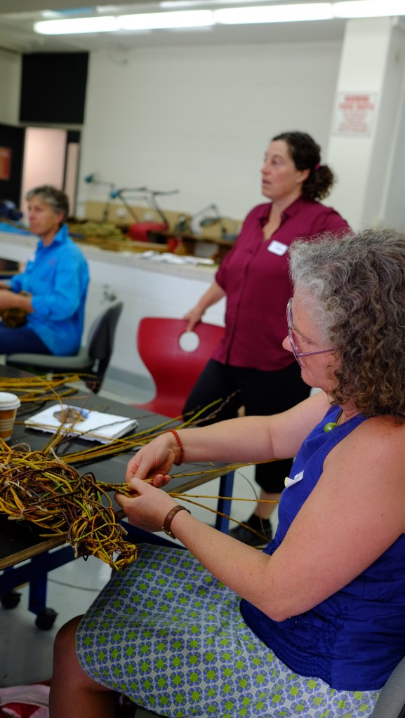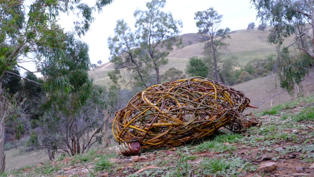 In April and through to the beginning of May in 2021, I went to Wangaratta to participate in a festival called Across the Arts. GANEAA hosted the festival and invited me to run a community art project as well as two day workshops. In the week leading up to the main events I worked with about a dozen people in the community to create a pair of platypuses out of wild willow. Then during the weekend of the festival I ran weaving workshops; weaving birds on Saturday May 1 and weaving platypuses on Sunday May 2.