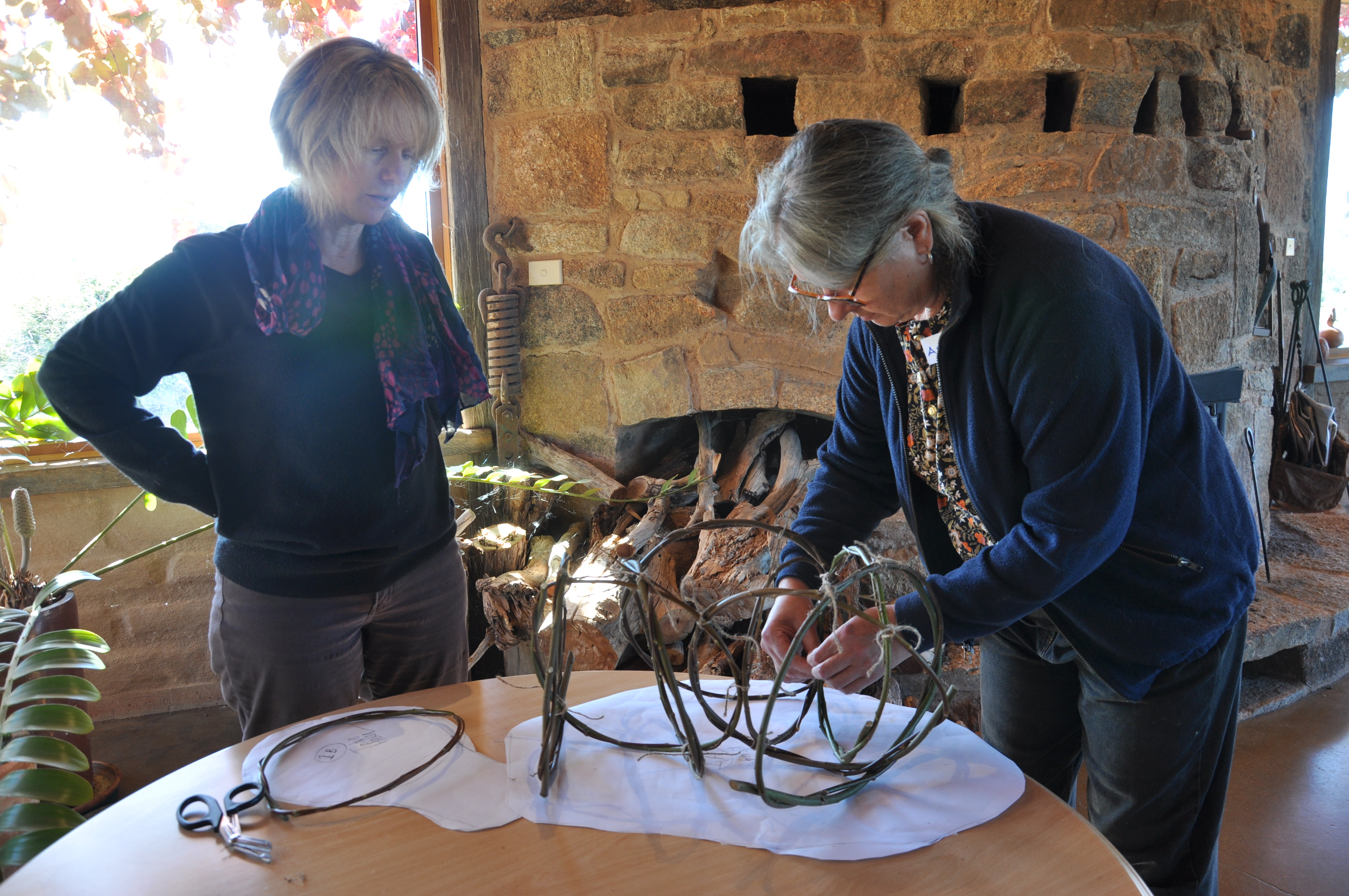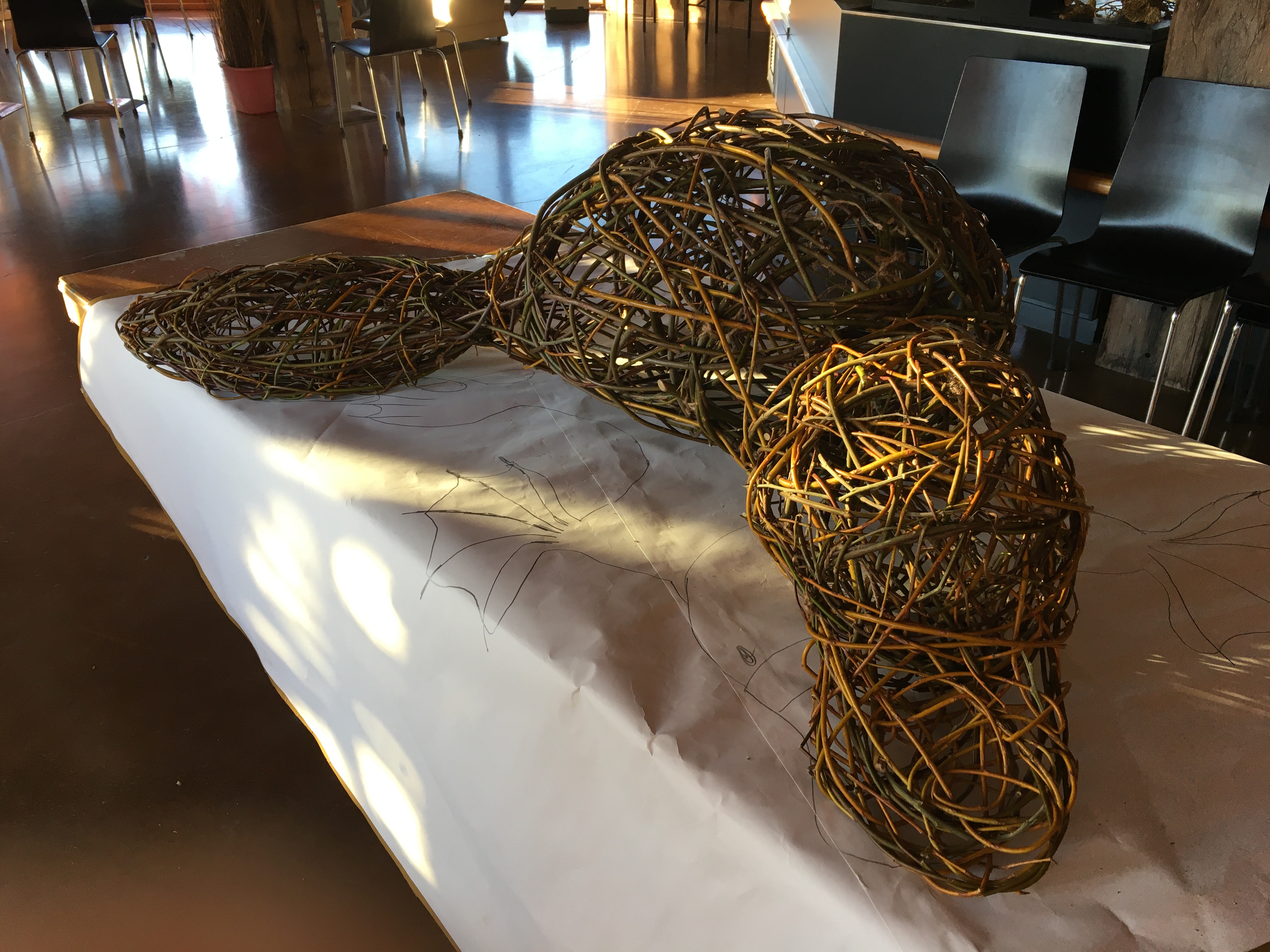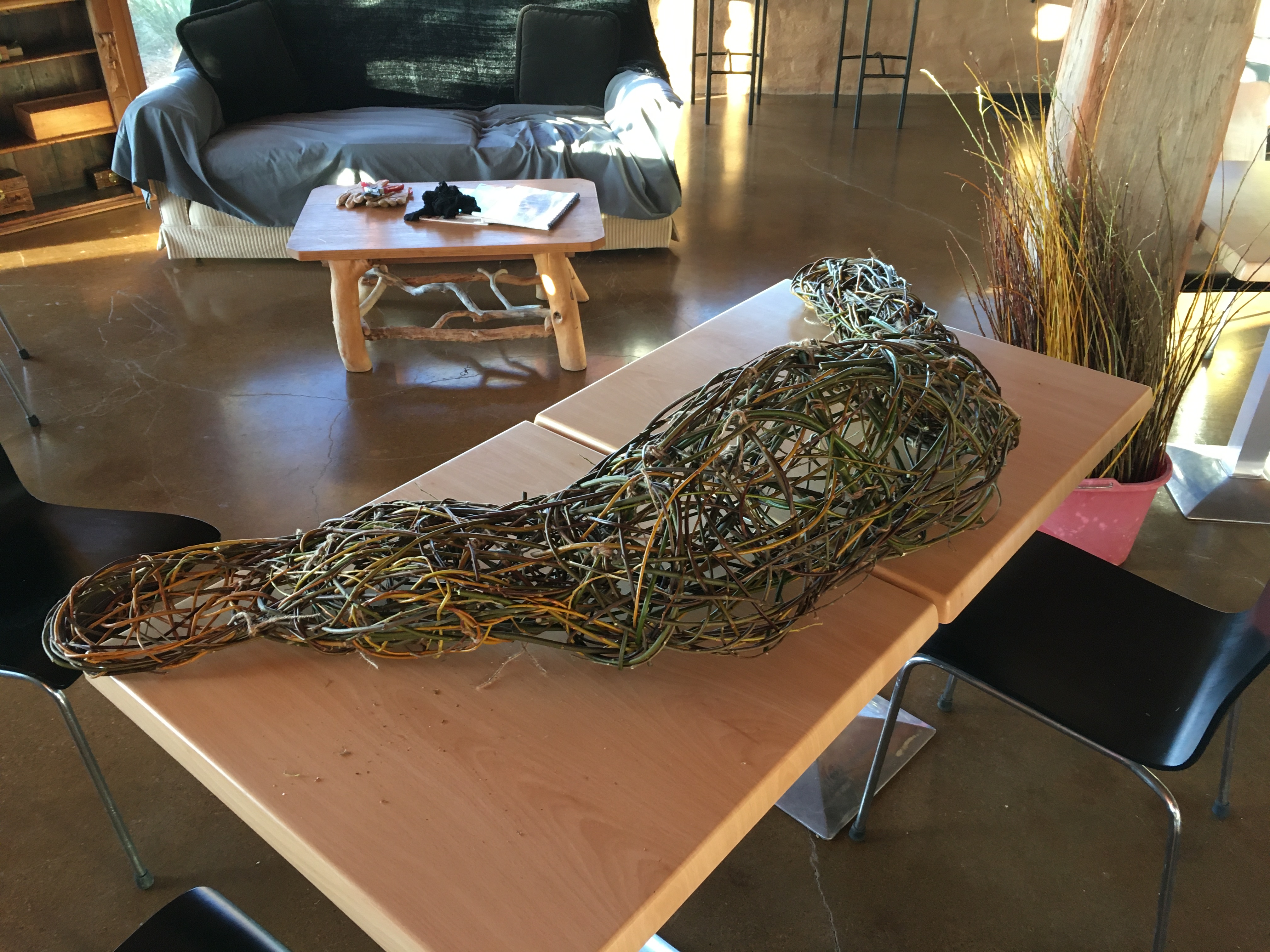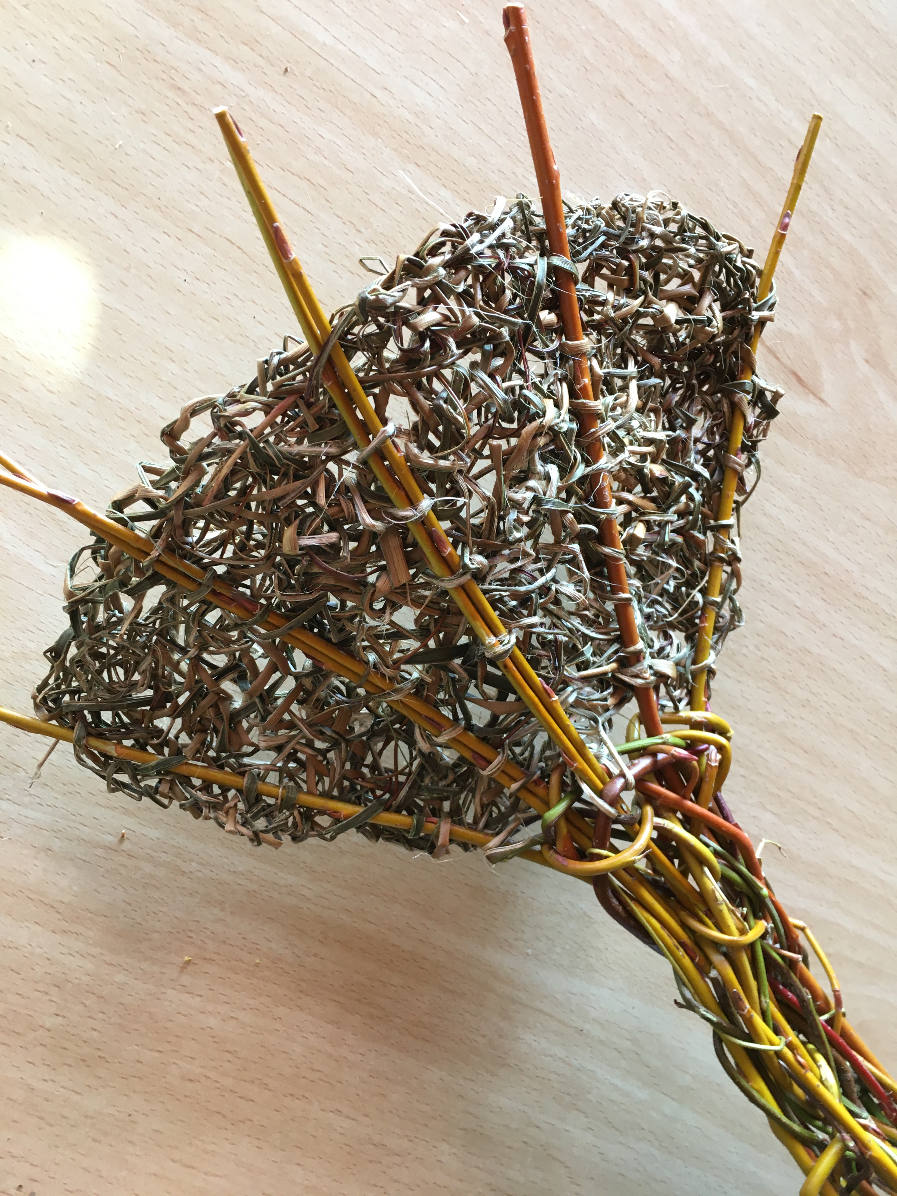 In April and through to the beginning of May in 2021, I went to Wangaratta to participate in a festival called Across the Arts. GANEAA hosted the festival and invited me to run a community art project as well as two day workshops. In the week leading up to the main events I worked with about a dozen people in the community to create a pair of platypuses out of wild willow. Then during the weekend of the festival I ran weaving workshops; weaving birds on Saturday May 1 and weaving platypuses on Sunday May 2.