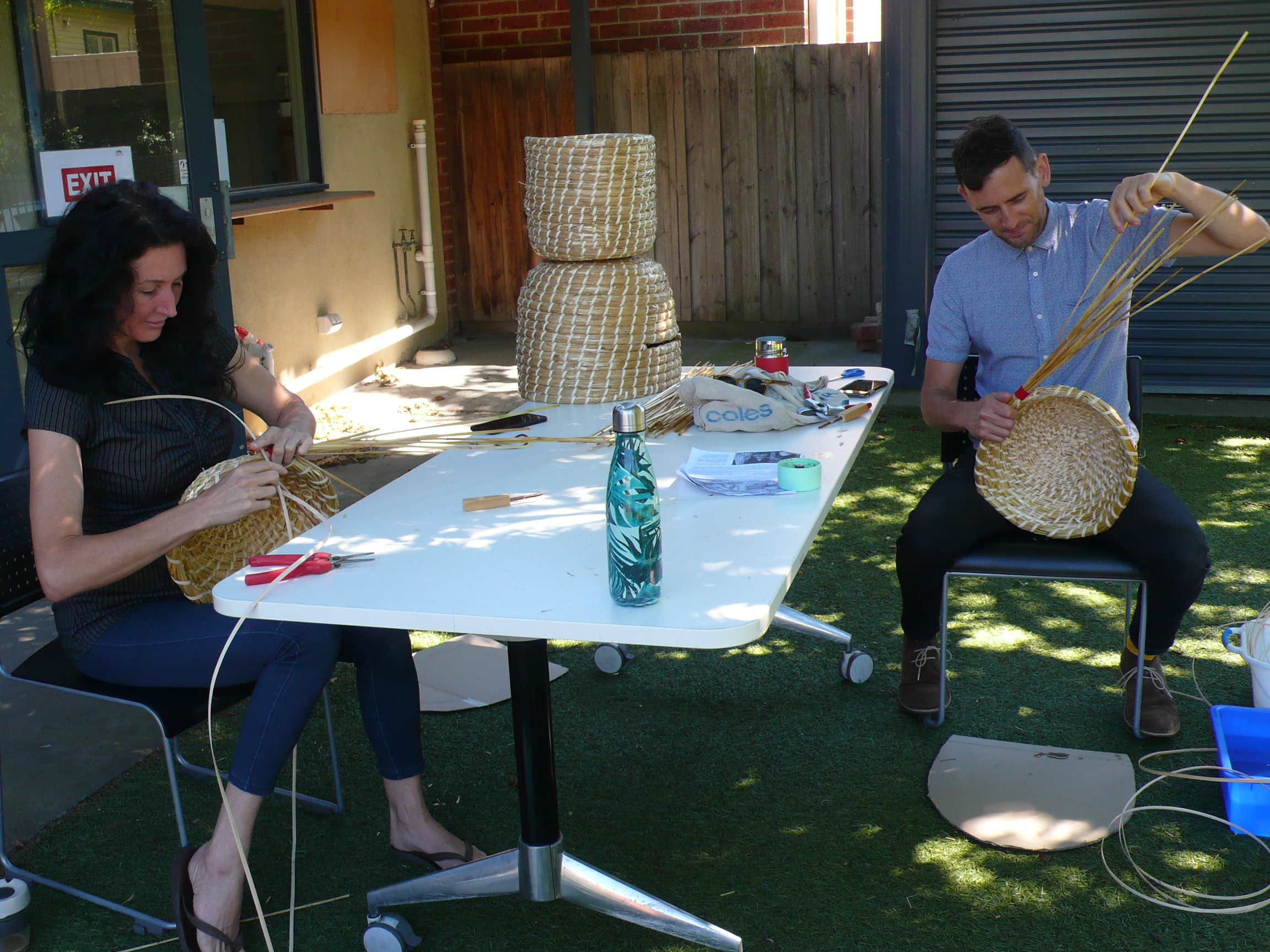 Participants making bee skeps at the Surrey Hills Neighbourhood Centre in January 2021.