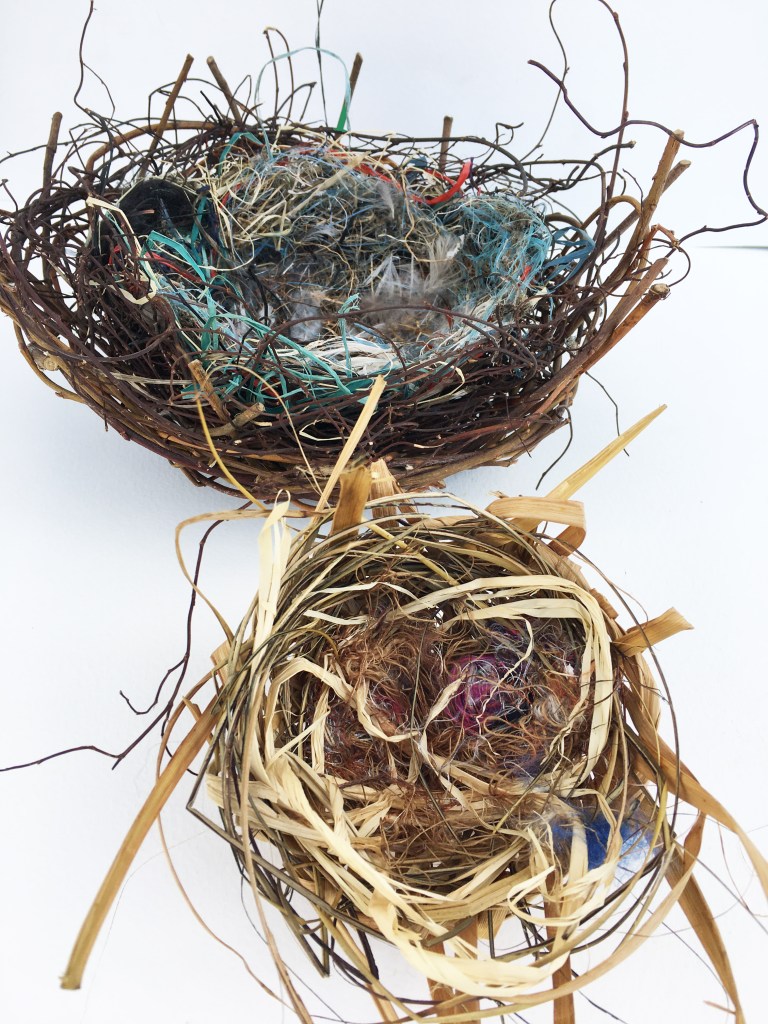 After lunch a diverse range of plant fibres are shown, and a talk given about how to collect, dry, store and rehydrate them for use in basketry. To finish participants are supported to use natural plant materials provided (and collected) to make nests using the technique of random weaving.