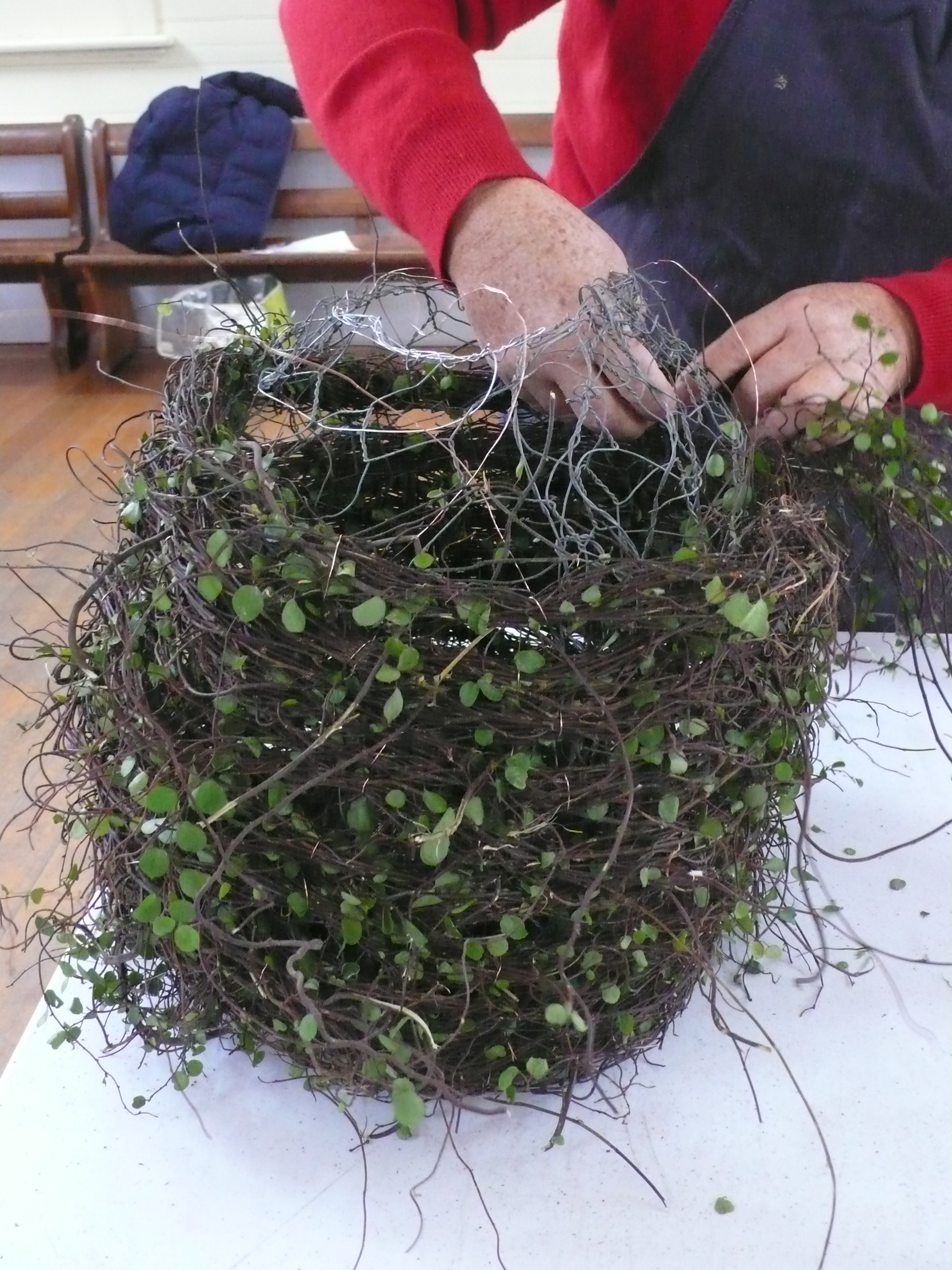 The Artist Tutor would like to acknowledge Sue Dilley for teaching this technique to her (who in turn learned it from Wona Bae). Wona Bae has creatively adapted the Japanese technique of tatami, which is more traditionally used to make mats and screens. Other contemporary florists are also adapting this technique to use in their work.